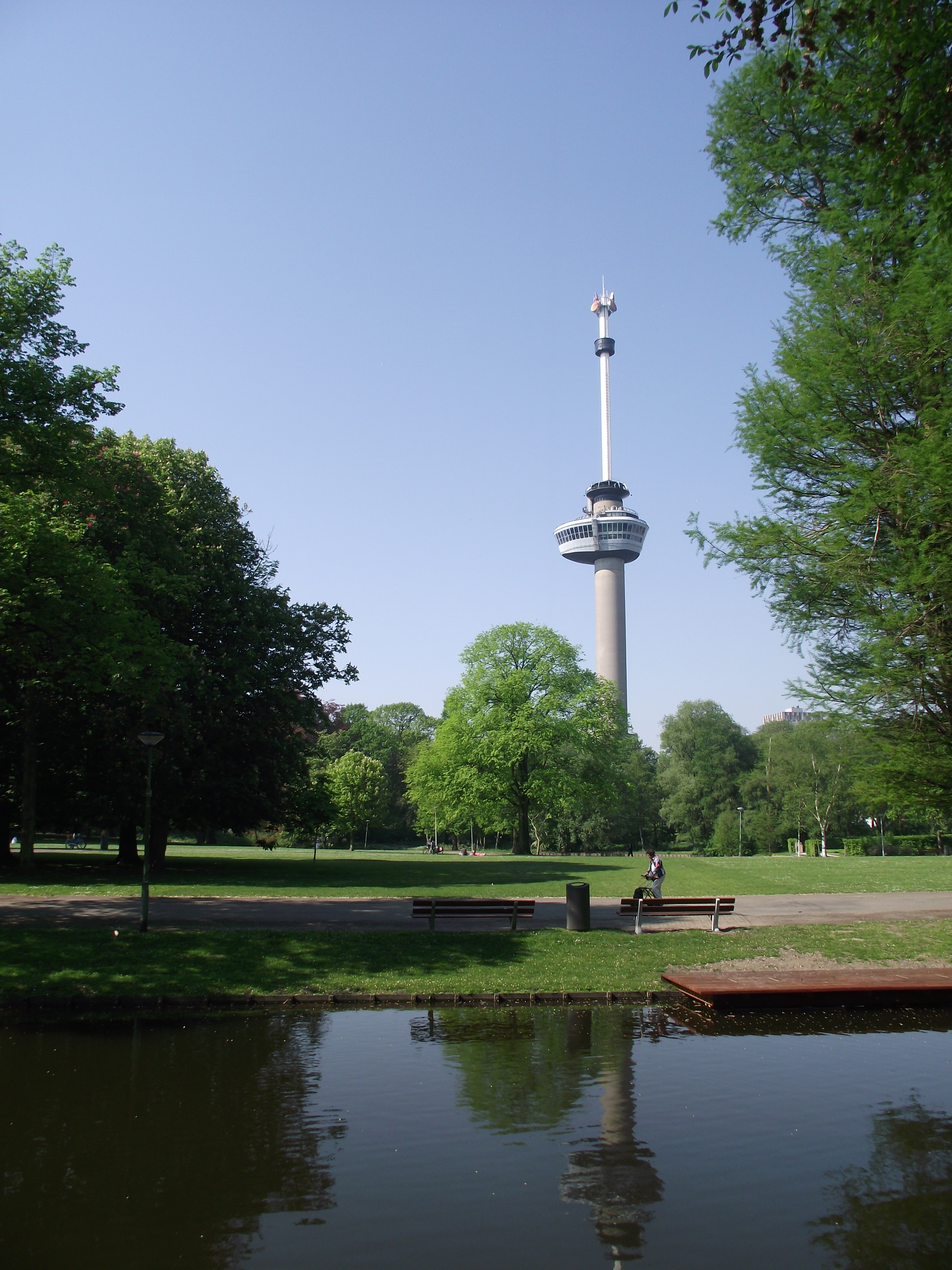 The following day was greeted with pleasure, an air conditioned room had ensured a good night of sleep which was quickly followed by a hearty continental breakfast. We then headed out into Europe’s largest port to discover what the city had for us. We began once more along the waterfront and walked towards a large park, one of Rotterdam’s best features, which is overlooked by the supposedly famous Euromast that neither of us had heard of; a concrete tower with a viewing deck and revolving restaurant.