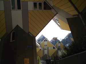 Once we had finally reached Rotterdam we were met with the welcoming sight of a station under construction which, as we would later find out, was the same state much of the city was in. We stopped of at tourist information office to buy a map, which unlike those that we had been given in Belgium were not made for young travellers by locals but by a governing body who clearly had no idea about what information was important. We found the hostel on the map and headed through the city to some buildings of particular interest which turned out to be the hostel.