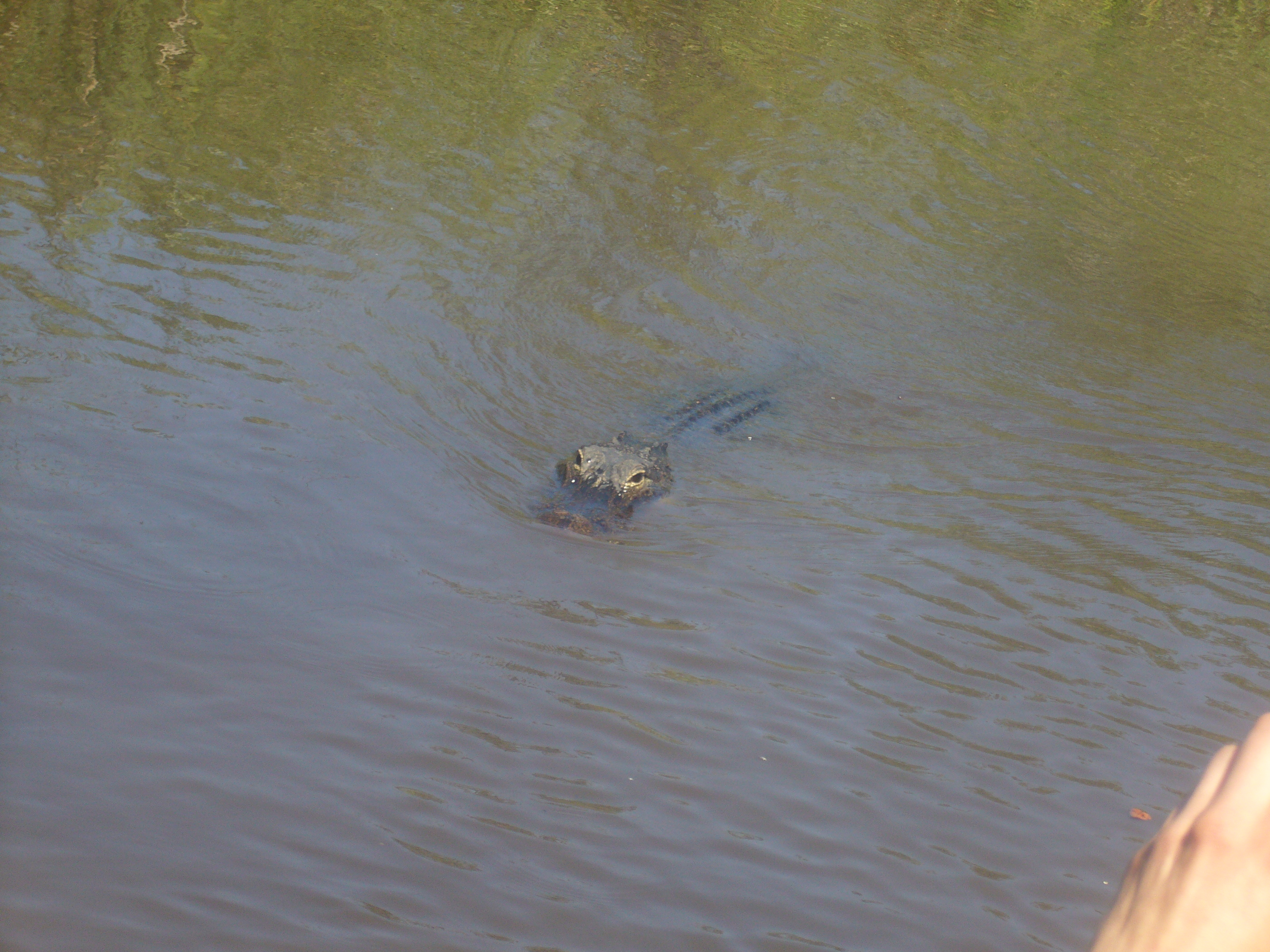 more than 15 years, gave us a lot of information. We began slowly down a canal, meeting two small alligators who were quite happy to swim right up and bump the boat.