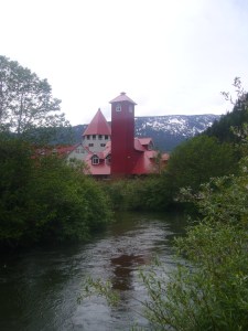 While we had stopped, our guide, Heather, had managed to pick up some coffee for us all and I had my first taste of Tim Horton’s, which is best described as the Canadian equivalent of Starbucks. I’d seen them everywhere and people seemed to actually exchange money for the goods. We boarded the coach once more and drove onwards to the West, slowly gaining on our night’s accommodation is Kamloops. Our lunch was served to us at Three Valley Gap. The family that own this resort had purchased buildings from the local area and built themselves a small ghost town which gave us something to enjoy before setting out once more. The grounds were also home to a roundhouse which held old trains and carriages and a garage containing very old and I expect expensive Ford models.
