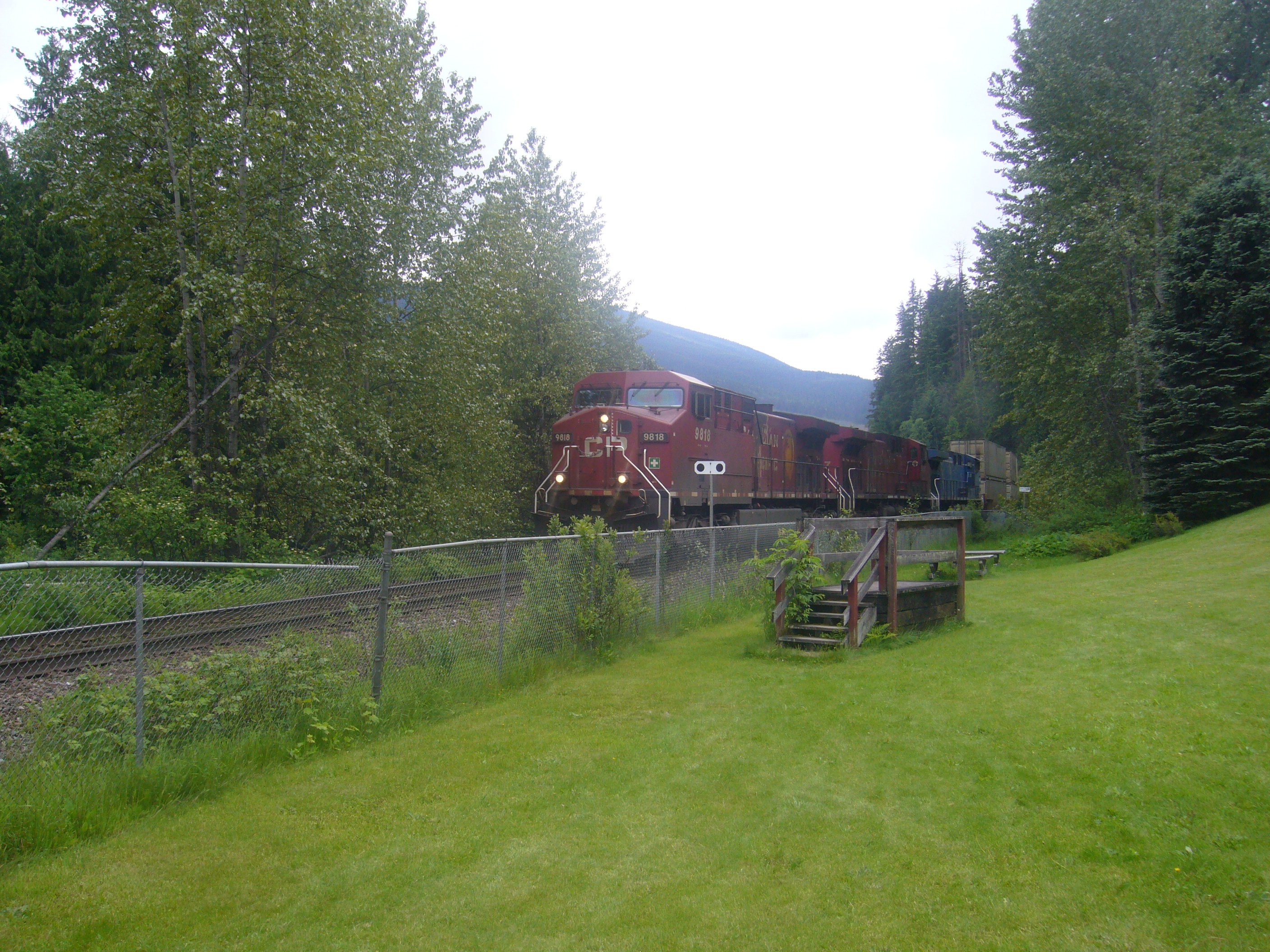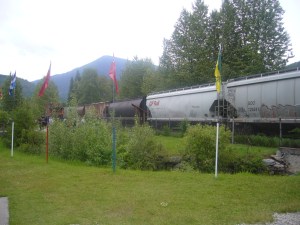 From Three Valley Gap our journey took us to the point where the final peg was hammered into the Trans-Canadian railway and saw one of the freight trains being moved onward following the strikes. This was an opportunity for us all to appreciate exactly why we were unable to travel our first day by train. It took well over ten minutes for the freight train to pass, not because it was moving slowly but because it was several miles long. Across the duration of the journey we would see several of these mile long trains just sitting, waiting for the backlog to clear so that they could venture on to their final destinations.