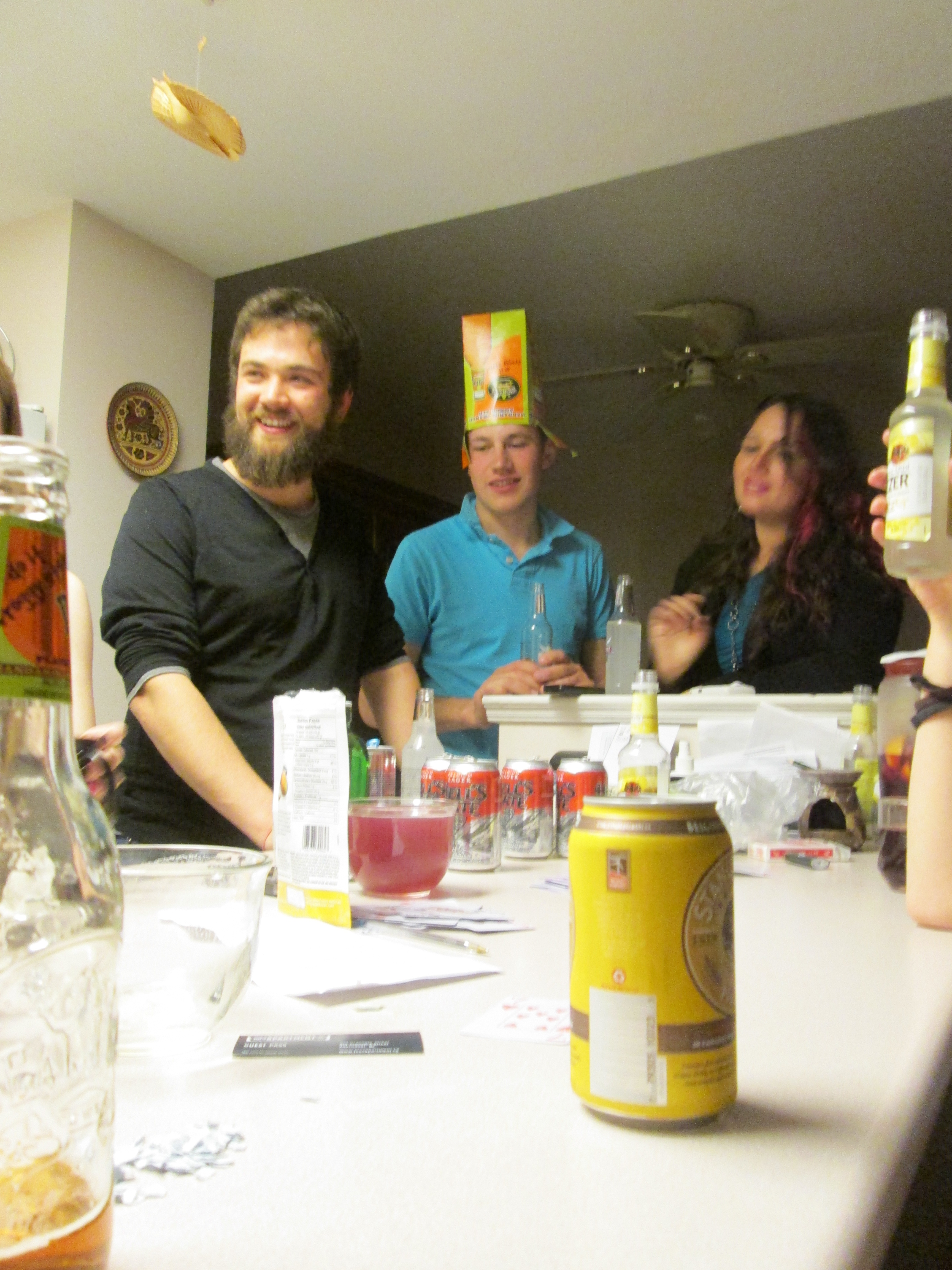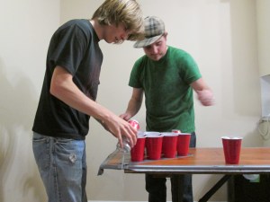 After several rounds it was agreed that we should try another game; skadoosh. This is played by filling stereotypical red plastic cups with various amounts of beer and attempting to bounce a ping-pong ball into an empty cup. There are two empty cups and the aim of the game is to “slam” the player to your left, forcing them to drink from one of the full cups.