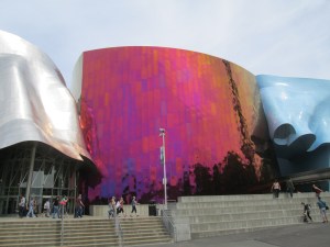 Having enjoyed the views I made my exit through the standard gift shop selling everything and anything that might in some way be related to the Space Needle. My new CityPass offered me access to several of the museums in the area and the one that took my fancy the most was the Experience Music Project and Science Fiction Museum. From the Space Needle the building looks pretty cool, according to one source it’s meant to look like Jimmi Hendrix had smashed a guitar. From the ground, it just looks like some wildly coloured blobs.