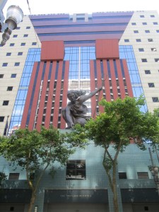 The Western side of the city is easy to walk around and within the downtown core the public transport systems are all free to use making it incredibly easy to see the city on a tight budget (which I’m now on). I’ll start with the sights closest to where I’m staying, next to Portland State University. The university campus isn’t much too look at, it’s nice and all but there’s nothing to really write home about. Apart from the fact that it’s there and it exists. A little down 5th Avenue is the Portland building, a work of interesting post-modern architecture that looks a little like a wrapped and ribboned present. However the most striking part of the building looms over the street before it, the second largest hammered copper statue in the U.S.; Portlandia.