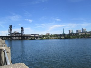 So this was a somewhat unusual type of drawbridge, it probably doesn’t even count as a drawbridge. When large boats come down the river, the middle section is lifted up by winches in both towers allowing for the boats to pass through. It seems like it must take a lot longer than the standard drawbridge to raise and lower an entire section of road, but, like I said, they have two of them here so they must be fairly efficient. So I made it across the river, and the view of the city was pretty good. Portland, being one of the smaller cities I’ve been two doesn’t really have the same level of striking skyline as many of the others but I kinda like it.