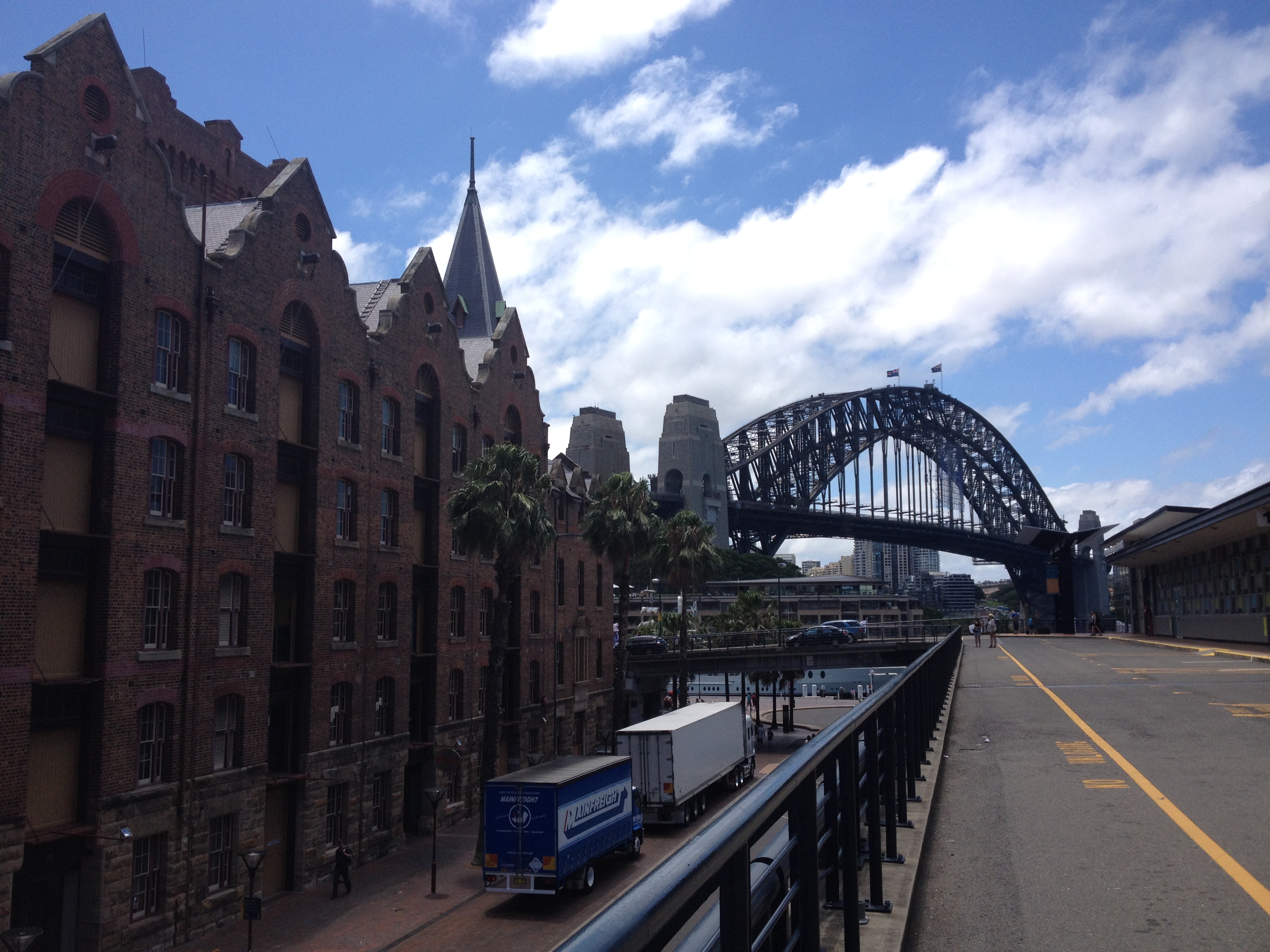 Our next stop was the old customs house which has an excellent scaled model of Sydney under the floor. After a quick break we continued on to Circular Quay, which if it were not for a huge cruise ship in the harbour would have provided me with my first glimpse of the Sydney Opera House. On the other hand, it was only a matter of minutes before I laid eyes on what may be the second best bridge in the world, after the Golden Gate; Sydney Harbour Bridge. Our guided walk headed up through the suburb of the Rocks where the convict settlement that would grow into the city we know today was founded.