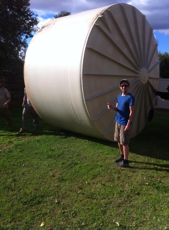 The most important development for us has to have been the shower. Since day one Mick has shared his plans to introduce hot running water to our lives and he has finally delivered it to us. A couple of weeks ago he called us all together and we took a drive to collect a 25000 litre water tank. That really is a big tank, I think we were all surprised when we got it loaded onto a trailer and delivered it safely back to the farm.