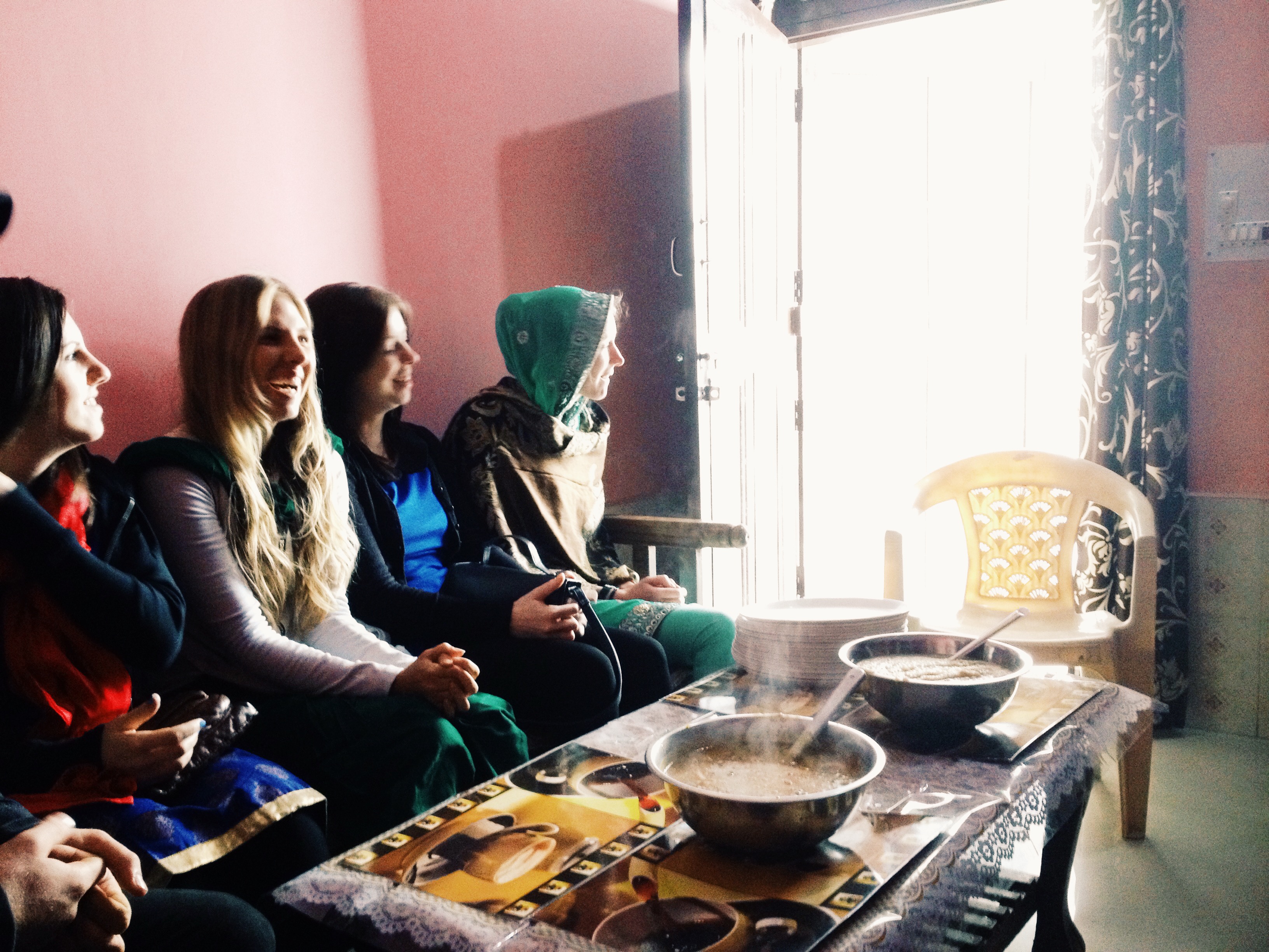 I’ve realised the reason that everything smells like cow is not just because everyone has a cow, but every time that cow goes to the toilet, it’s droppings are collected, compacted and set out to dry. Cowpats are a source of fuel. Beyond the back wall of the courtyard of the house we’re staying in is a vacant block of land. Vacant that is, except for the cow poo on every available surface. Despite all that is lacking, everyone has a mobile or a tablet of some kind which I guess goes a long way towards showing what people attribute value to. Cars and motorbikes are more common than carts. The young men are all dressed up in an arguably fashionable way, jeans, vests, sports jackets. A few of the older men have stuck with their traditional ways. However, with the temperatures being cold, everyone casts a shawl over their head and shoulders for warmth. All of the women over a certain age, which might be as young as ten it’s difficult to tell, are wearing brightly coloured saris, dresses and scarves. This gives a pretty solid indication of where things stand in terms of gender equality in these here parts.