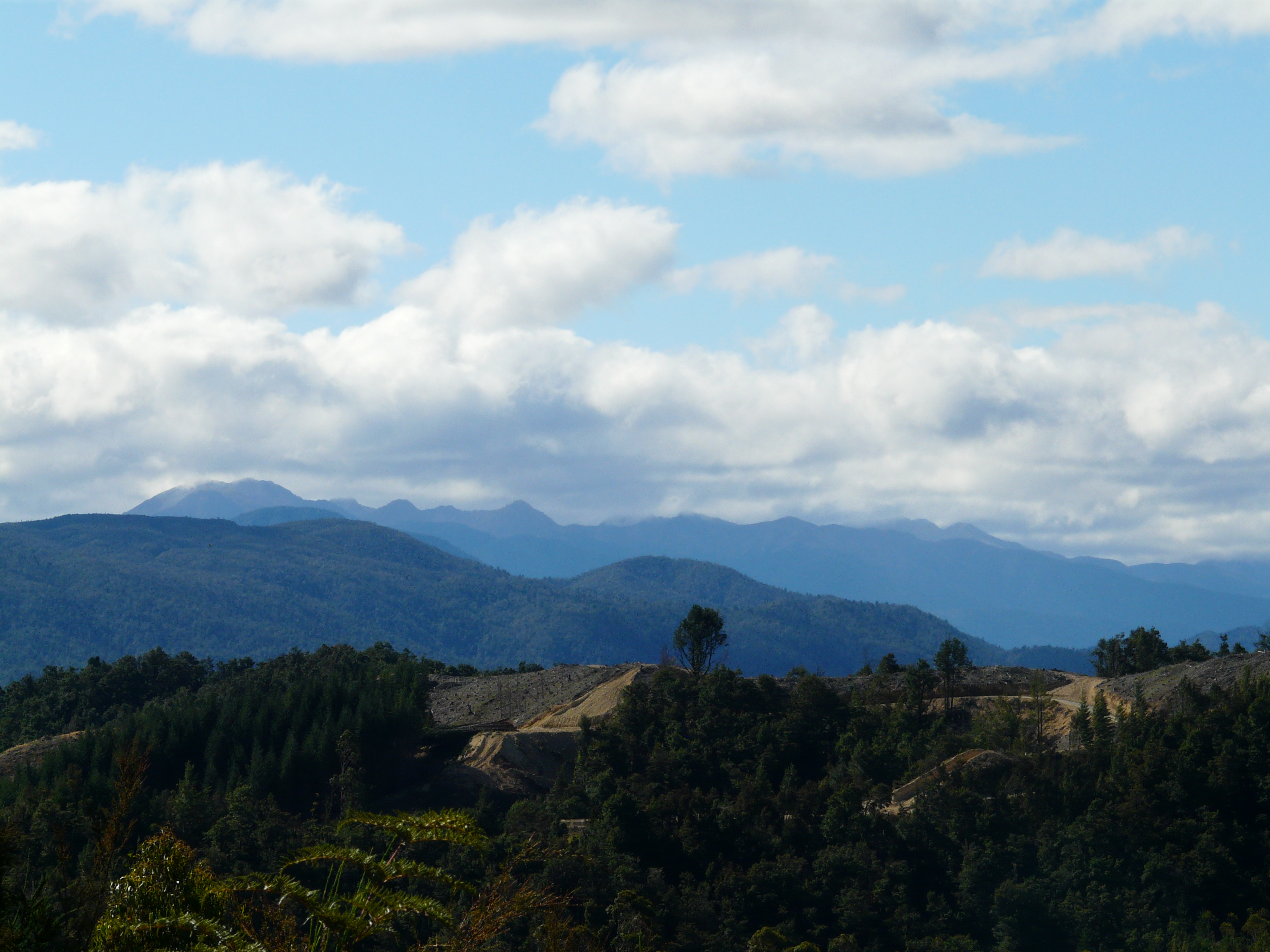 The inland track cut through a rainforest of ancient tree ferns, palms, mosses and lichens. The west coast doesn’t have the elegance for Tolkien references. Dinosaurs were everywhere again. The track was misleading, going ever up hill. Rising, cresting, dropping back down before rising twice as high again. It eventually levelled out and creeped back down towards the river. High cliffs, rocky overhangs, dead branches covered in new growth lined the track.
