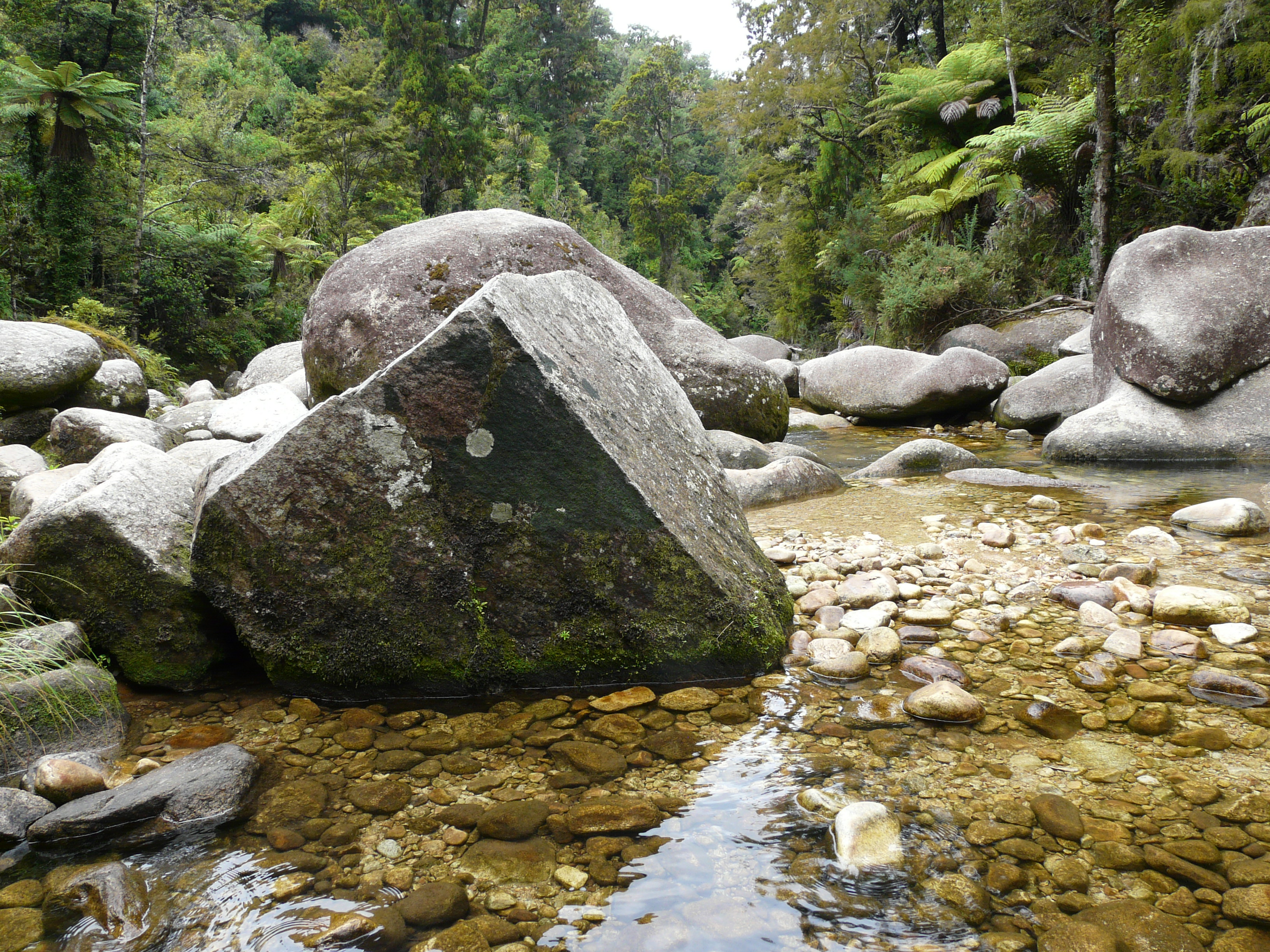 Through the lush coastal forest we had glimpses of golden beaches and crystal clear waters, had the weather been in our favour I suspect we may have opted to stay in Anchorage and enjoyed the surrounding beaches. We were pleased we’d have a few days in yet another stunning corner of New Zealand’s South Island. We eventually arrived at Cleopatra’s Pools to find glass-like pools, waterfalls and huge boulders. Additional entertainment brought by the Italian gentleman who lunged across the rocks as if he did it everyday before losing his footing and ending waste deep in the water.
