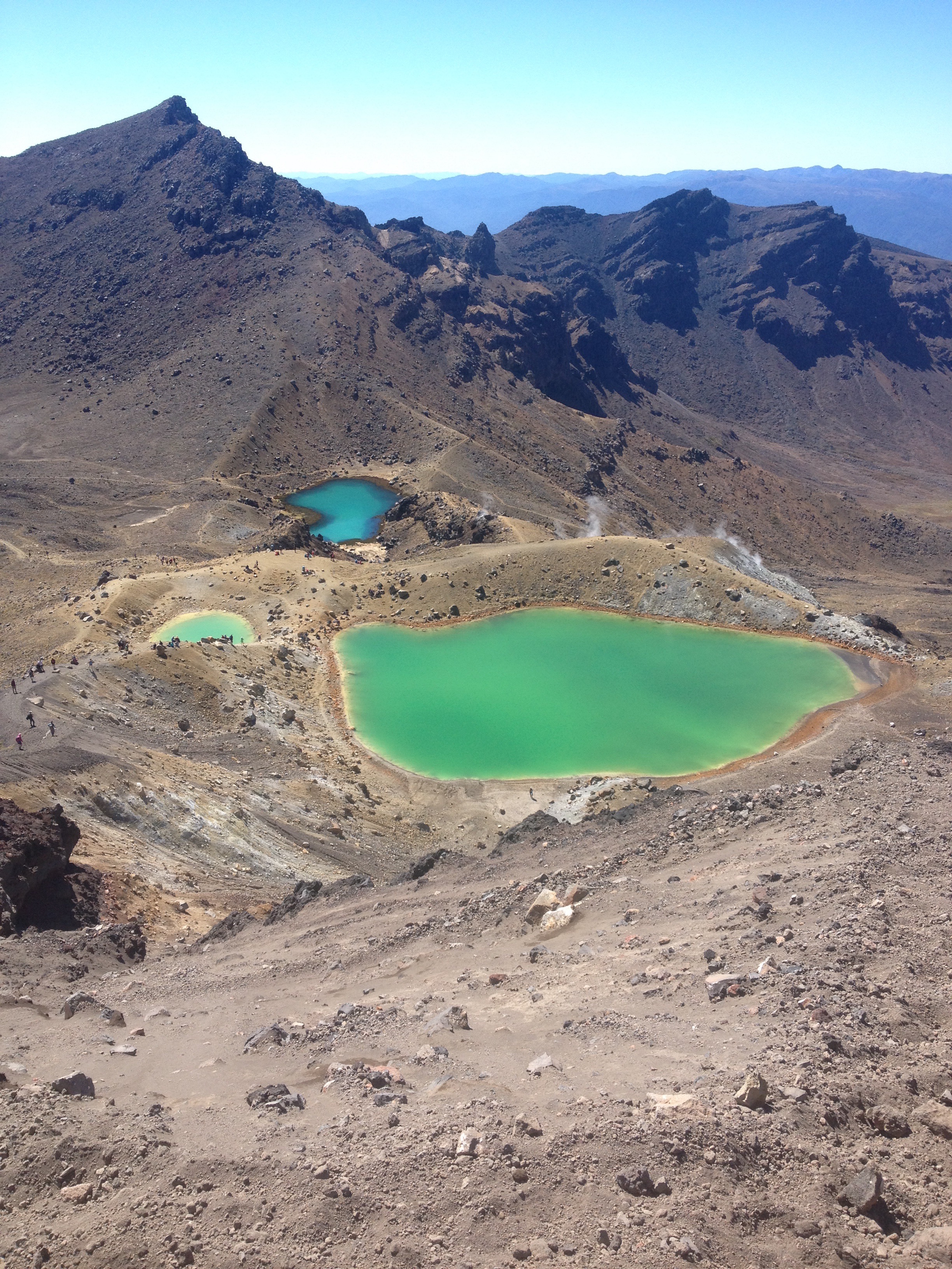 The way down provided me with a spectacular view of the emerald lakes in the craters below. Steam rose, hissing out of cracks in the scorched earth, the air is thick with the smell of rotten eggs. This is most definitely an area of volcanic activity. Along the way there have been numerous signs advising if lights flashing to return the way you came, by this point I figure if there’s an eruption I’m done. There’s no way out from here that doesn’t drop you in to the middle of another dormant crater.