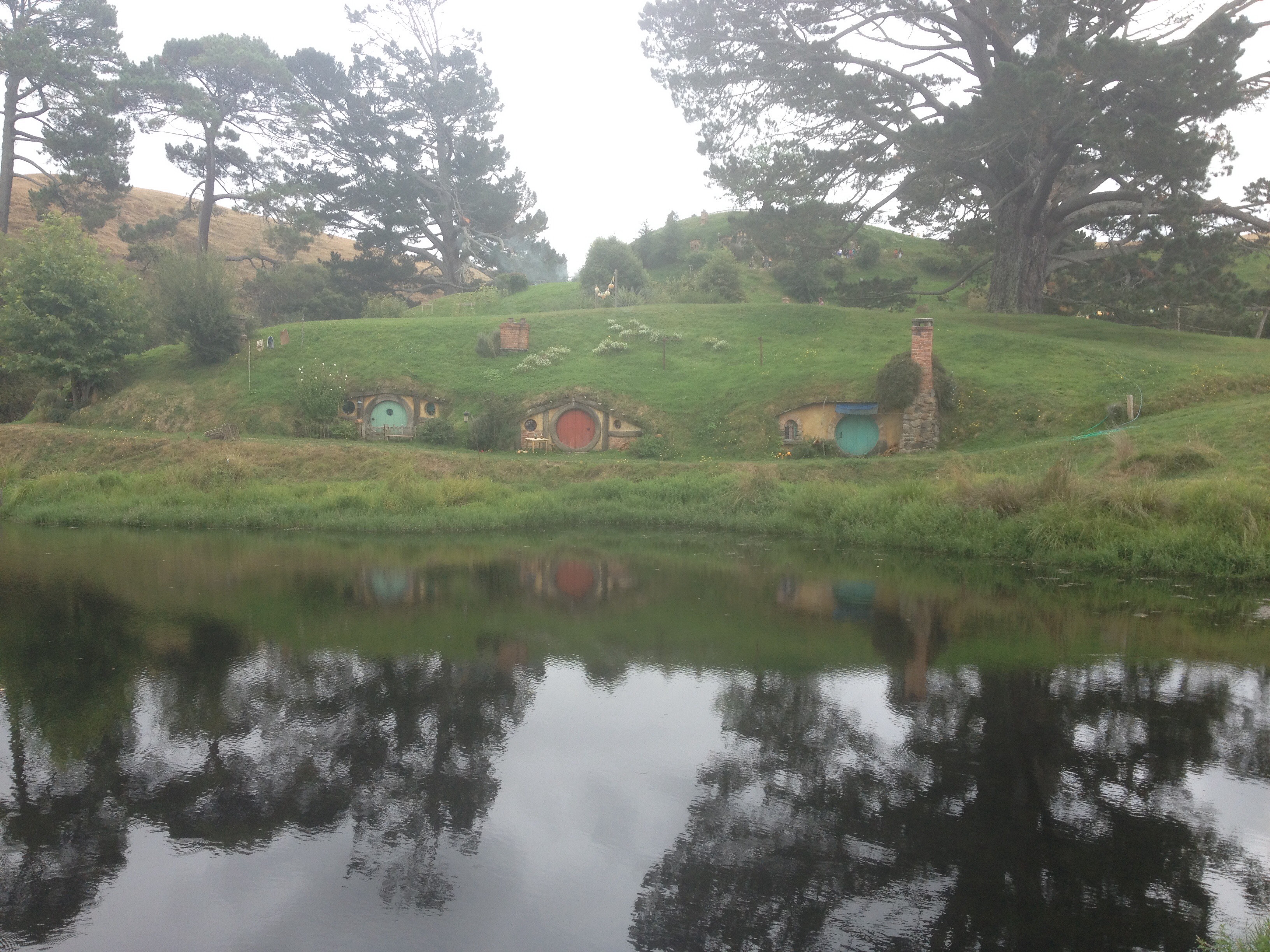 The entire journey from Christchurch until now I’ve been torn between homes to dinosaurs or the realms of elves, dwarves, orcs and goblins. The landscapes of New Zealand are without a doubt worth of locking in to film. Some areas looked as though they had been lifted straight from the movies, others left a little bit more to the imagination. Jurassic Park wasn’t even filmed on these islands! The Hobbiton Movie Set was a mix of both, obviously not the dinosaurs though. It’s a tiny green oasis of little homes in the middle of the rolling hills of a dusty brown sheep farm. If it weren’t for all of the obvious signposts along the road, you could quite easily miss it.