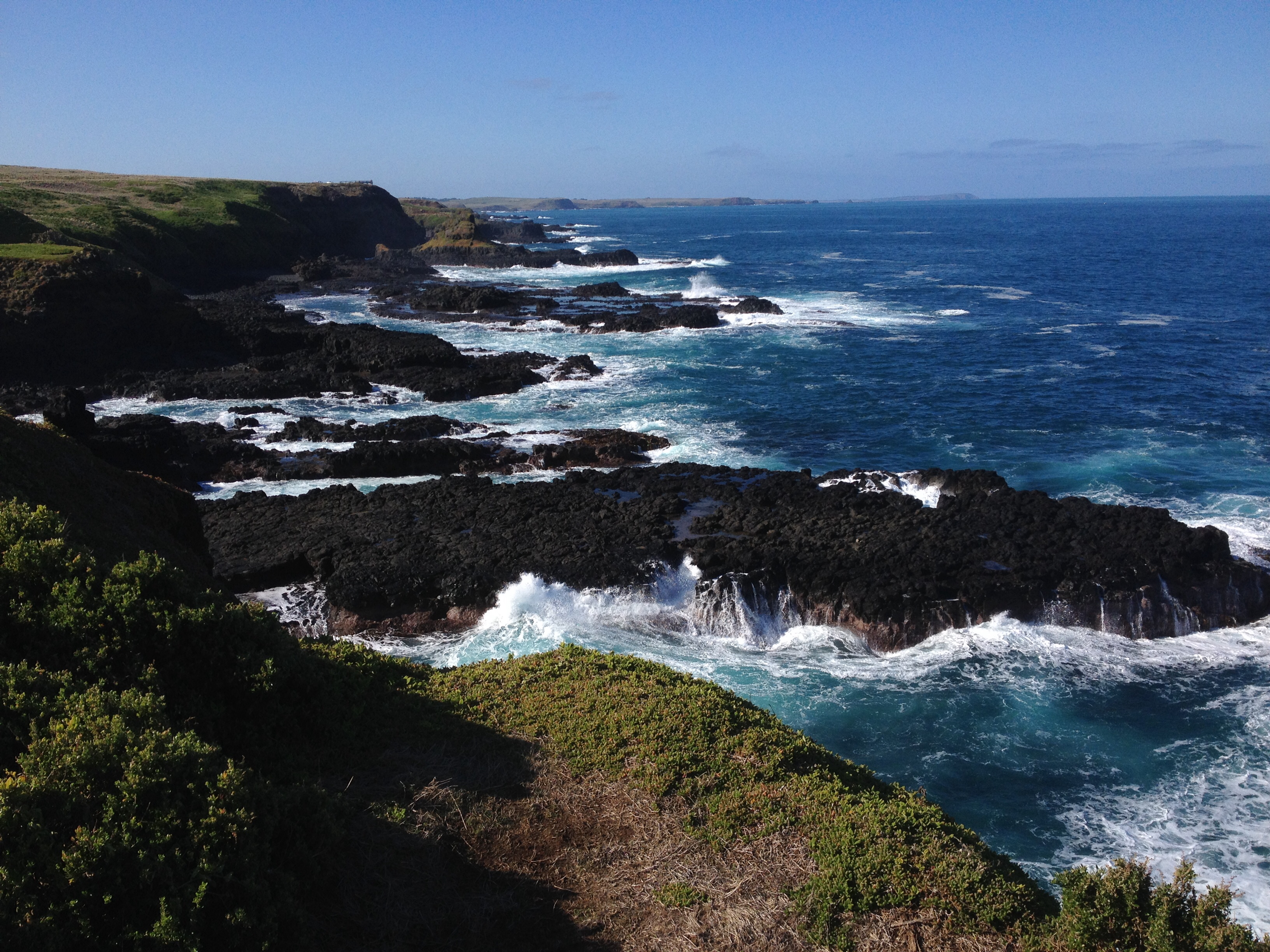 We drove through Gippsland. The countryside looked so different now, in the final warm days of summer. When I’d been this way for the wine tour all those months ago it had been baked brown. Now it was showing signs of the wetter days to come, lush green grasses filled the fields and lined the roads. We followed the rugged, southern surf beaches of Australia. There’s nothing between here and Tasmania except the huge crashing waves.