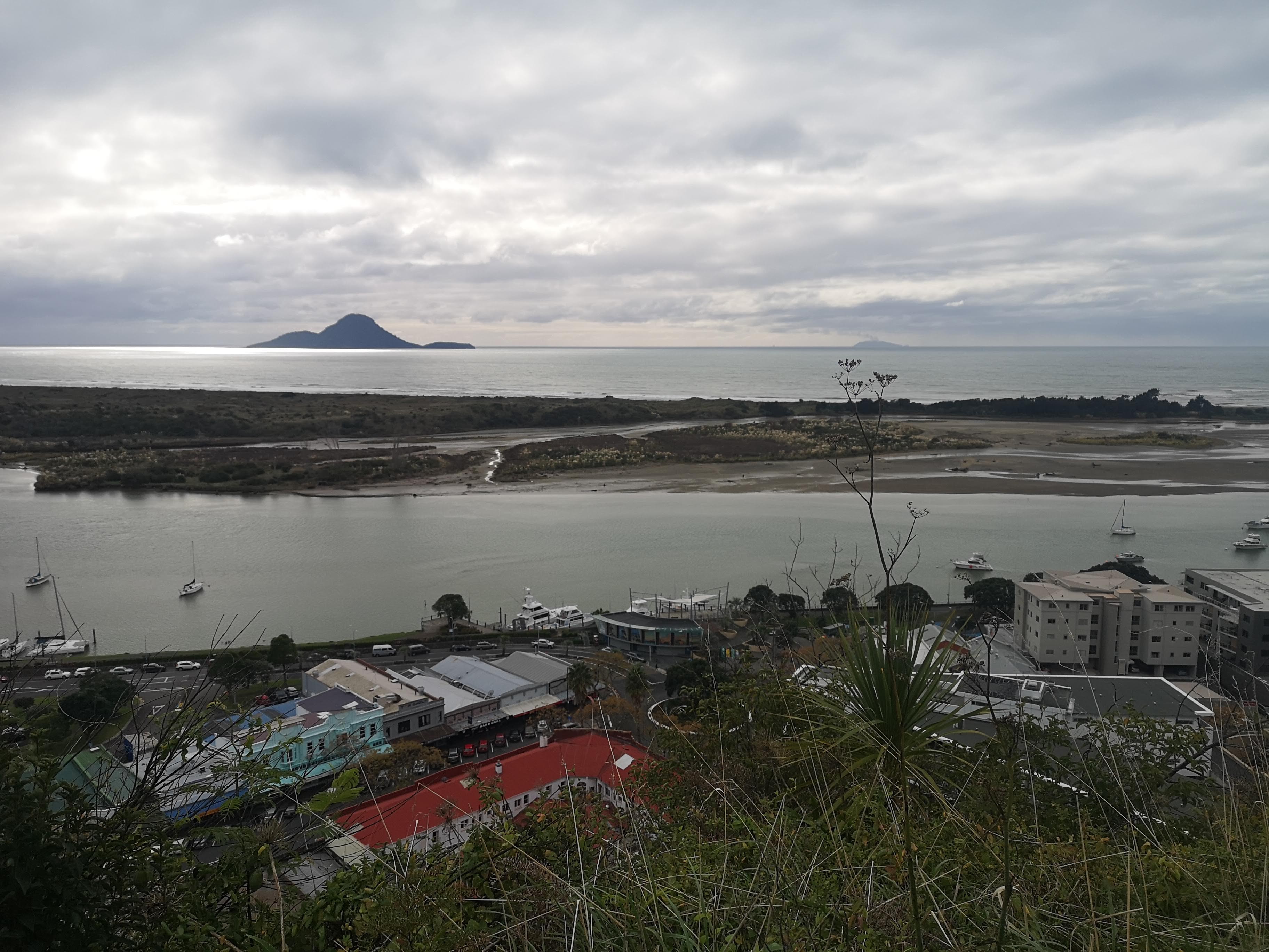 I leave the bush to follow a road to the bottom of a hill. I’m now walking into Whakatane itself. I was starting to feel like I’d been on my feet for three hours. On Commercial Road, my nose is tickled by the smell of frying food. Meat and onions. I pass the KFC, the McDonald’s, the Burger King. I’m not sure any of these places have ever smelt so good. I can’t be tempted. I’ve got a packed lunch, a peanut butter and jam sandwich, a cereal bar, a couple of satsumas, and an apple. I see the staircase leading up to the next section, it looks like a big, steady climb. I’m in no rush. I eat half of my picnic before I start on the steps. Painted on each step is part of a scene. If you could see all the steps in one view, they paint a picture from the bottom of the ocean to the night sky. This was a pleasant distraction from going up. From the top I followed the hill separating Whakatane from Ōhope. Along the way I passed through the sites of several Pās. These former defensive structures were no longer visible to the untrained eye. Were it not for the occasional informative sign, I’d have no idea. The forest has already reclaimed much of the land.