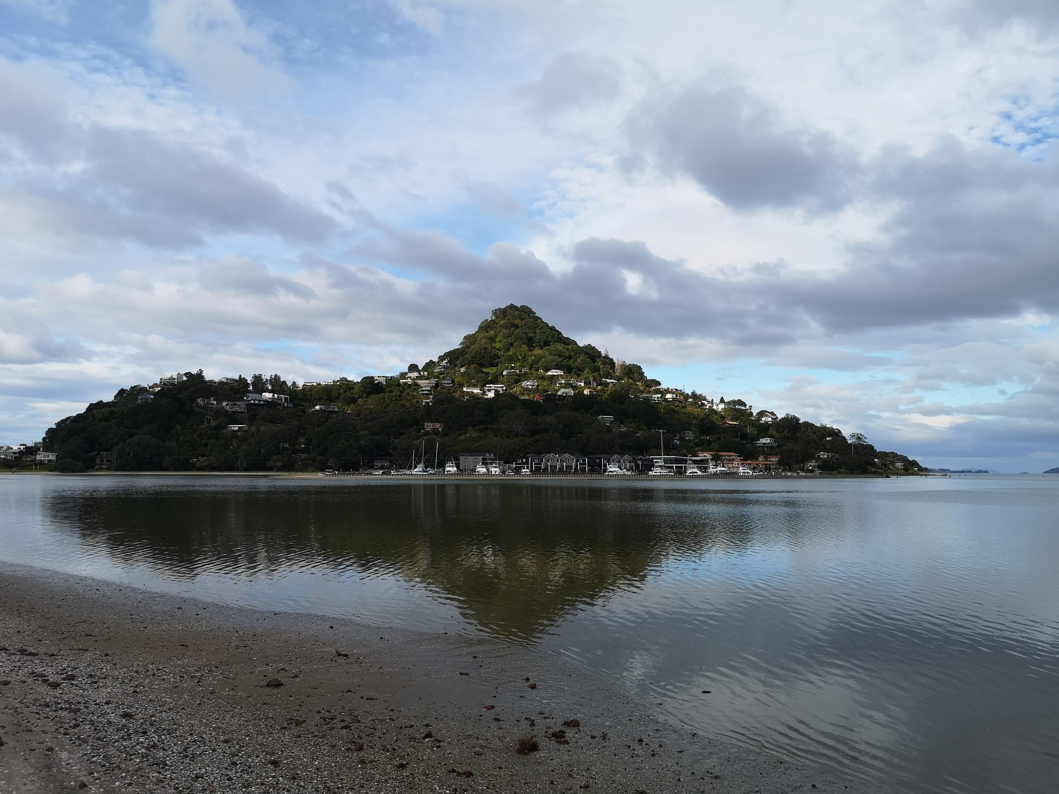 I get back on the road. Hairpins and switchbacks lead to my first real glimpse of the Coromandel Forest State Park. Shark teeth peaks rise above the green. Those must be The Pinnacles. I hope to get a closer look at them when I reach the other side. The sweeping vista is phenomenal. A brown sign indicates there’s a picnic area around the next corner. I pull in to find the view obscured by trees. Never mind, at least I’ve seen it and keep on seeing it. I continue my drive into Tairua. The rain still hasn’t arrived. There’s blue skies above. I change out of my civilian clothes, pull on my hiking gear and get out while I still can. I go up Mount Paku for glorious views of the shimmering, sapphire blue bay and the topped with black cloud, dark green forest covered mountains beyond. I come back down and walk along the estuary. The power lines following the shore are dotted with pairs of kingfisher. The New Zealand kingfisher is bigger than the British one but their feathers are more reserved, muted blues and sandy yellows. When the sun catches them in flight they still shine bright. I walk past the varying qualities of holiday homes. You can see how the bach has evolved over time. Start with an empty plot of land. Start by putting a caravan on it. Need more space? Erect a permanent awning. In time this might get replaced with a portacabin. You might want to put a deck on it. Running out of room again? Why not add a second storey. Put a deck on that too. Suddenly you’ve got a glass fronted mega shed the whole family could stay in. I cast my envious eyes away from the fridges, the bathrooms, the light switches and return to my carpark with a toilet block at one end.