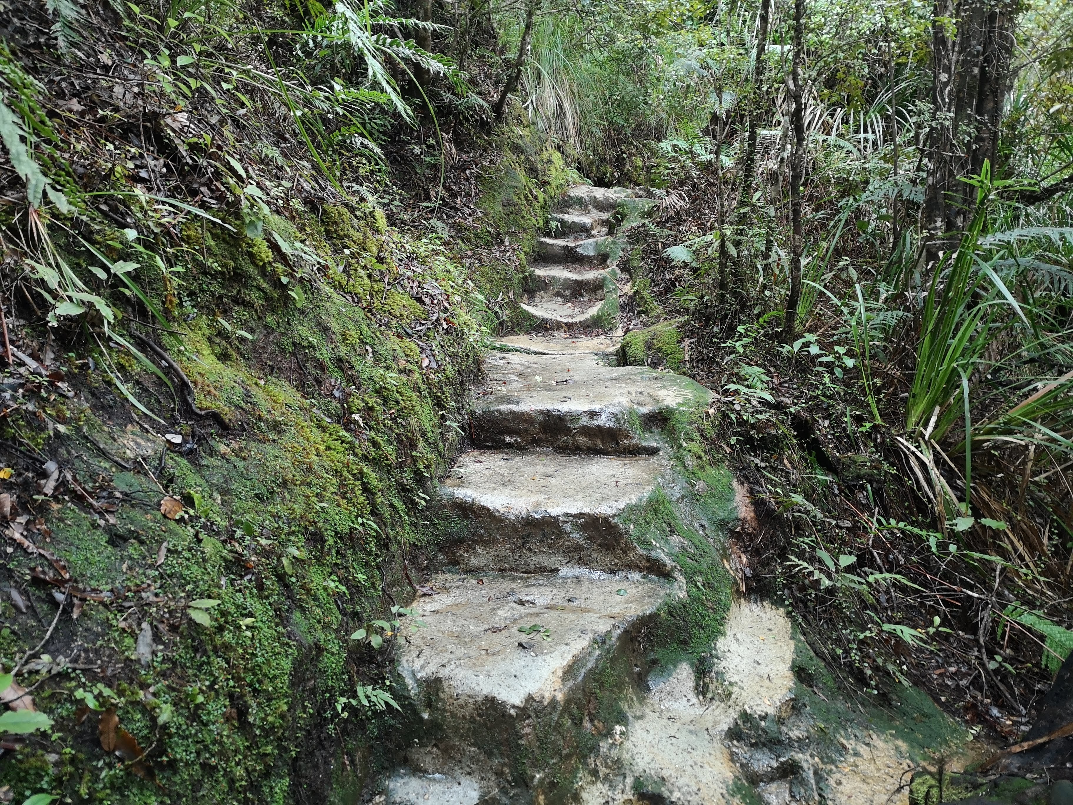 The track begins as an extension of the gravel road, crunching under foot. The branches of trees lean over the path to create a green tunnel. The Kauaerange River ripples alongside. This is going to be easy if it’s like this all the way. It was not like this all the way. The gravel gives way to the old, almost cobbled, skid road. The climbing comes hard and fast. Steps too tall for my little legs, broken boulders and land slips. I pull myself up, sweating hard, breathing harder. I’m down to my t-shirt before I’m halfway. Rain drizzles down. For once it comes as a relief, keeping me cool. I pass a group of women who have stopped for lunch next to a waterfall. I don’t pause for anything longer than a hello. The path continues up. I’ll stop at the top I tell myself. When it flattens out, then I’ll eat my sandwich. I catch up with the group of youths and their leaders sat on either side of the path. They kindly move out of my way as I pass through. Up, up, and up. Passing people all of the time. I was starting to think I’d been underestimating myself. No surprises there. I caught up with an American couple, they had started not long before me. I pass them too, telling them I’ll see them at the hut. It’s only an hour away. I’ll drop my bag, eat my sandwich, then tackle the summit climb to the Pinnacles. When I arrive at the hut there’s a note from the warden. Be back at 3:30. Ages away. I case the joint. The Pinnacles Hut looks like a mountain lodge from the outside. There are two bunk rooms containing 40 beds each, a kitchen containing an island of stoves surrounded by sinks. All the doors are locked. There’s no way in. The American couple, Pike and Kelly arrive. I decide to follow them as they complete the same circuit as me, in case they know something I don’t. No closer to gaining access we take a seat on one of the outer decks and get chatting. They’re planning on going up for sunset. The longer I think about this plan, the better it sounds. I ask if it’s ok for me to tag along with them, and it is. I finally eat my sandwich. Rob the Warden arrives, takes our names, checks us in. He tells us he drinks the water from the tap but the choice is ours if we want to boil it before drinking. He seems of sound enough mind. I take the risk. Rob unlocks the doors to let us lay claim to a bunk. I bag a bottom bunk, away from the door. Minimum fuss and hopefully minimum noise.
