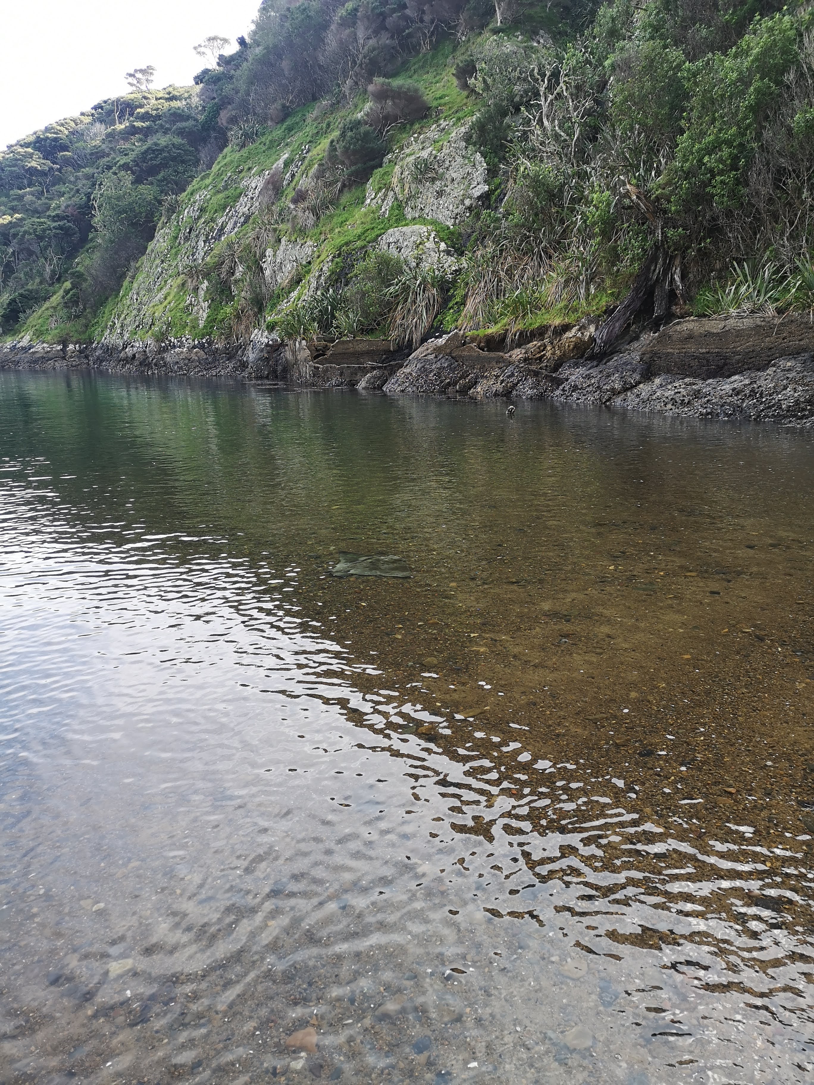 I drove out to Rawhiti where I had intended on packing my bags ready for an early start. It rained, obviously, so I didn’t. The skies cleared overnight, the temperature dropped. For the first time in weeks I woke up in the night reaching for my hat. Once my head was snug, I slept a little better. I got up, packed my bag. Doing what I thought might have been the best job so far. I felt like I had everything I’d need for an overnighter. Something to eat, something to sleep in, something to clean my teeth with, a beer to celebrate with. I pulled the weight on and started walking. I had to follow the road to the trail head for the first kilometre but that’s ok. Roads are smooth, mostly flat. The trail begins up a flight of stairs to the first stunning view of Oke Bay. I’ve spent almost a week in the Bay of Islands. Everyone says it’s beautiful. I hadn’t really noticed until now. The sun was out, the sea shimmering. A good day to be outside. A great day to be on the trail.