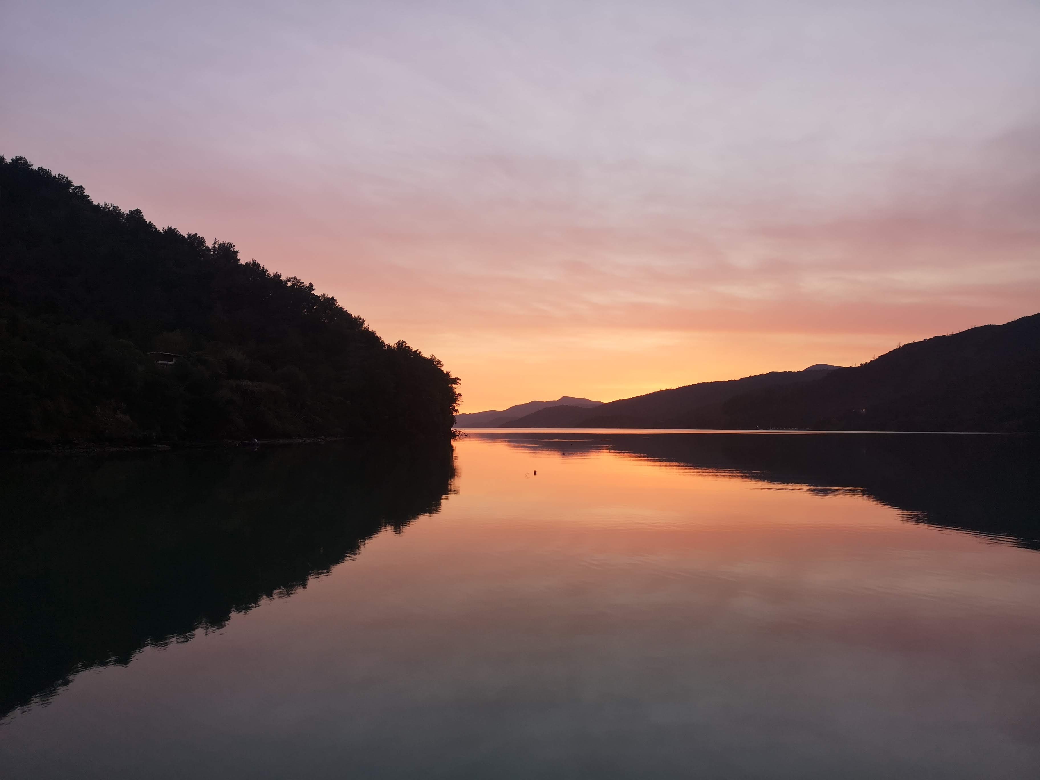 When I wake up I catch the last touches of pink on the clouds. Sunrise still happening at a reasonable hour. I’m pleased to be out of the city again, returning to something like my normal routine. Get up, have breakfast. Be on the road by 9. But not for long. My first choice of spot last night was in Anakiwa, at the end of the Queen Charlotte Track. I hadn’t planned to walk the full length. I’d need a track pass, food, shelter and a water taxi. I might come back for the whole thing later. I do walk the final section while I’m here. On my way in I wonder if I’ll find any dramatic changes between the forests of North and South. I can easily identify the black beech, thick black trunks and leaves shaped like those that used to line the paths of my walk to school. I didn’t witness the seasonal change from autumn to winter. New fresh green leaves spread along the distant branches. Spring has arrived. Beyond the trees, sunlight flickers over the water. Not quite a mirror, definitely not glass. I pass Davies Bay, too close to the van to justify carrying the tent out to spend the night. Cyclists and trail runners pass me in both directions. Occasional couples hike past laden with multi day packs. I arrive at the lookout I was aiming for, sit on a bench eat an apple. I’m reminded of the Lake District, if the Lake District had trees. I check my phone for a while, finding it isn’t much better than the view. I come back to the van, sitting by the waters edge watching the ripples across the water. Some of them are moving below the surface. Occasional flashes of white break free into the air above. I realise I’ve been watching a school of fish for a long time before I actually saw them.
