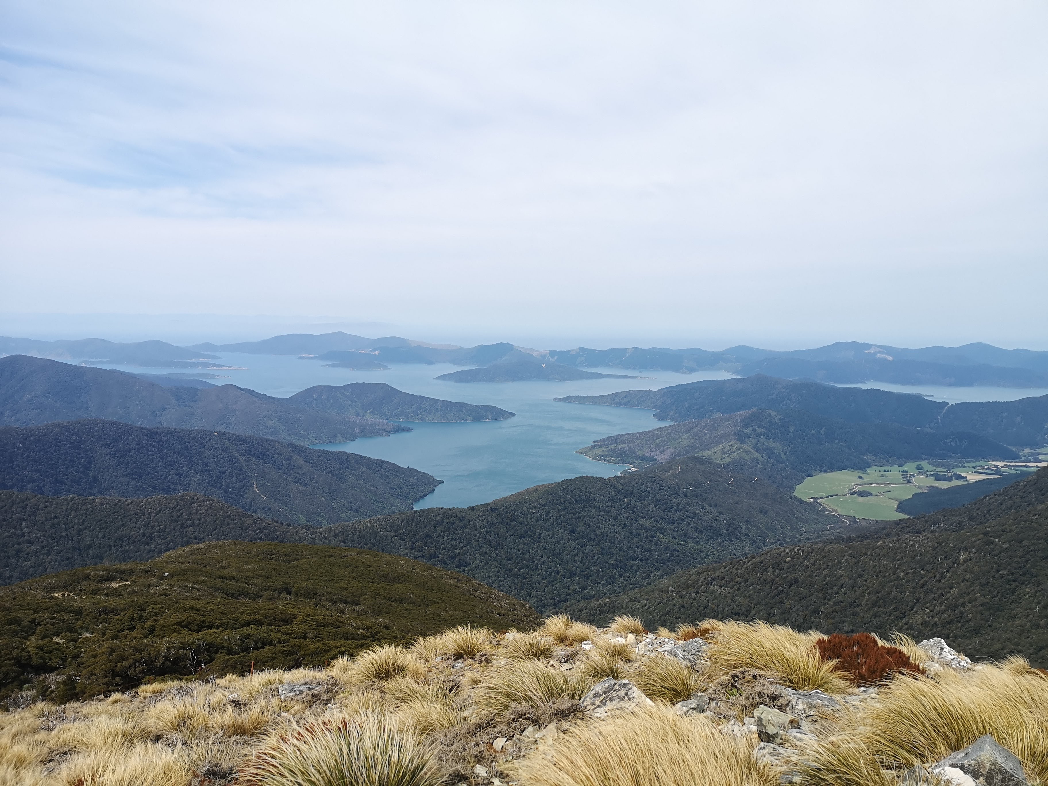 In the morning I rise early again catching the pastels of dawn across the sky, reflected in the water. For the first time I’m not cold to begin. Spring feels like summer already. I walked out on to the jetty. Two ghost like rays fly elegantly through the clear waters. I leave Anakiwa, joining Kenepuru road. Another twisting, winding road following the immeasurable length of the coastline. The faded white line painted down the road is at best a guess. At worst a suggestion that there’s a lot less road than there used to be. Not that it matters on these rural roads. Everyone drives down the middle, acting with a mix of surprise and outrage to find anyone else coming the other way, doing the same. The Marlborough Sounds remind of somewhere between the fjords of Norway and the lakes of North Italy. A spectrum of blues and greens from the sea to the sky. I park at the entrance to Mount Stokes tramping track.