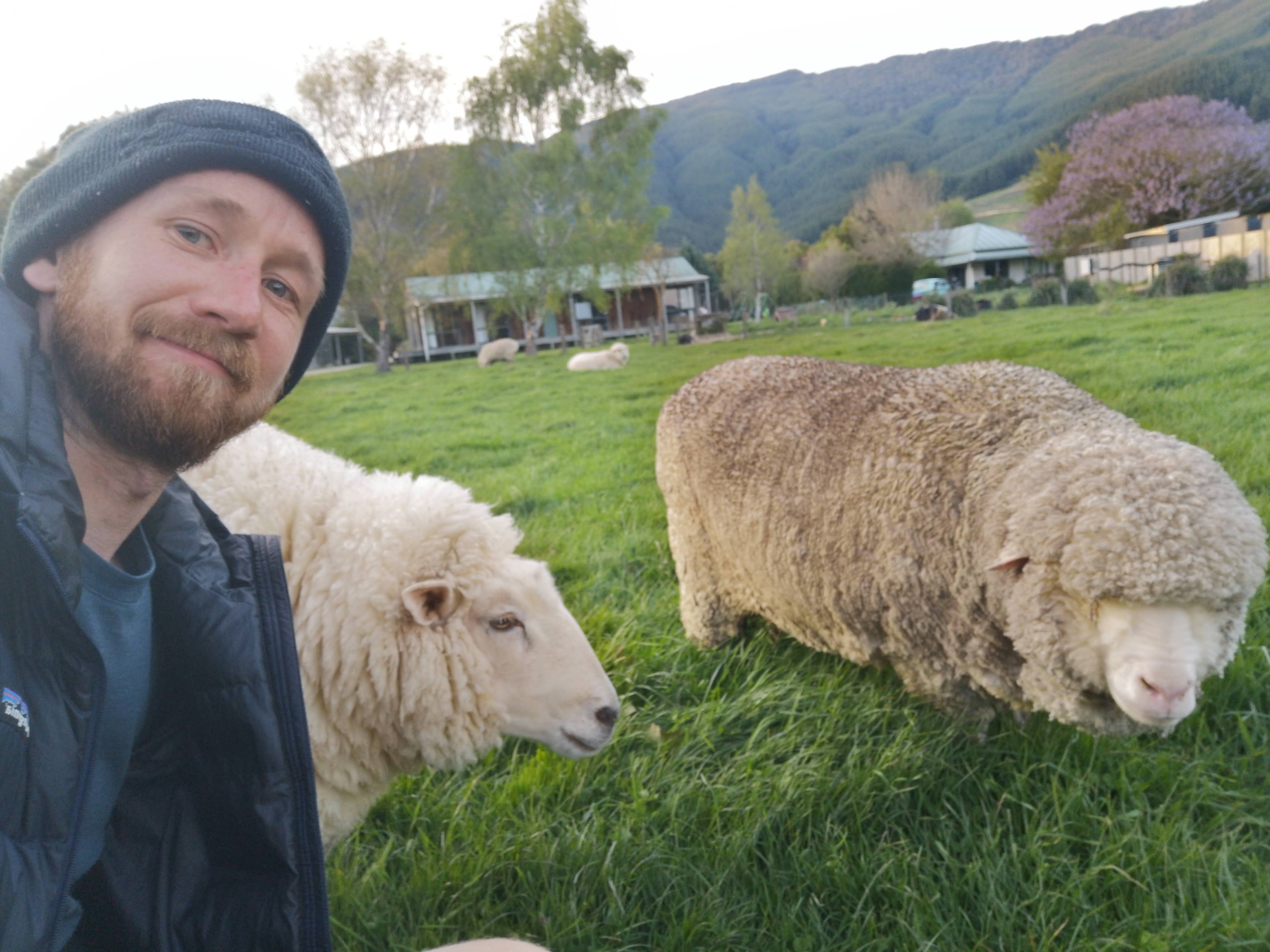 Smith’s Farm Holiday Park lies between the two places I’d stayed so far in Marlborough Sounds. On arrival I pay the standard fee of $20 but I’m given a banana muffin and a bag of food to feed she goats, the sheep, the pigs. Already this feels like the best value campground I’ve been two. It also appears I have the place to myself. Perfect. I head off to share the food bag among the other permanent residents. The little goat is curious and comes over to the fence. Once it realises I have food we become best friends. It makes every effort to get inside my pocket. The pigs don’t seem to care. They’re too busy scratching. The orange one decides maybe I’m worth investigating and comes for a snack. A chicken has followed me, I share some snacks. I cross the stile into the field of sheep. None of the sheep get up. One wonders over, then another not wanting to miss out. The bigger goat is some trouble. Tied up so as not to go far I was warned to make sure it was at full length before giving any snacks. I have another nose in my pocket before long. I leave with a few snacks for the way back. I duck under an electric fence into a field of cows. One does that weird excited nervous bounce that cows do. A small portion of my life flashes before my eyes as it leaps towards me. It stops, scared. They’re all caught in this curious terrified state. Do they want snacks or not? None of them are brave enough to approach closer. I leave the rest of the food with the little goat on my way back.