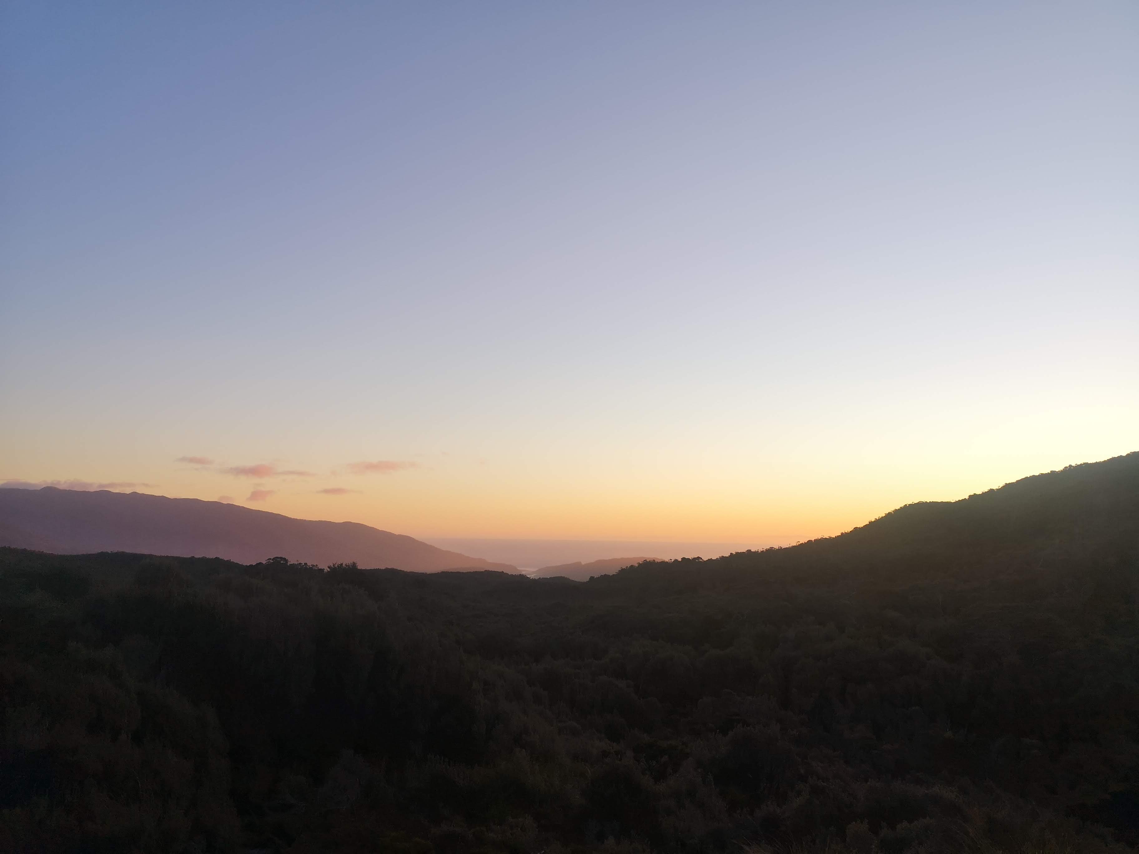 Peter and I brave the “mountain spa.” Down the mud track to the cool, cold creek. A plunge pool you can only really sit down in. Enough to take the grime off, to rinse the sleep out of my eyes. To feel incredibly refreshed. Others trickle in, faces I don’t recognise. The next batch of trampers coming all the way from Perry Saddle Hut. Susan told me I should speak to John about Te Araroa. The long path. He walked it 6 years ago in his 60s. 3000km down the length of New Zealand. The longer I’m on my feet for the more reasonable it sounds. My experience deepens. My confidence hardens. 5 days isn’t enough. This is the last of the ‘long’ Great Walks and there were only two. I’m going to have to push myself. The South Island at least has the opportunities. I’ve got plans right through until January. I realise I could work through next Autumn, next Winter. Sell the van in Spring and set off from Cape Reinga in October. Could I reach Bluff before my visa expires? That would be an adventure. With still plenty of light left, Eugene and I take to the hills to check out another lookout. The trail is more what I’ve been used to, deep trenches filled with water. Big steps up. Eugene flies up hill, with legs long enough to straddle the ditch. As if the view down at the hut wasn’t enough, now the hut is involved. The mountains stretch all the way back to Mount Perry. The Tasman Sea glistening beyond the final ridge lines. The final conversations of the night stretch over usual topics. How good it is to be here, how bad things look at home. How do you escape the cage? Will anyone pay you to experience this level of joy?