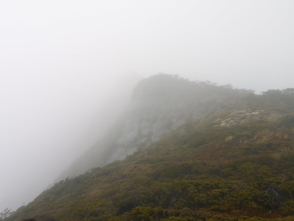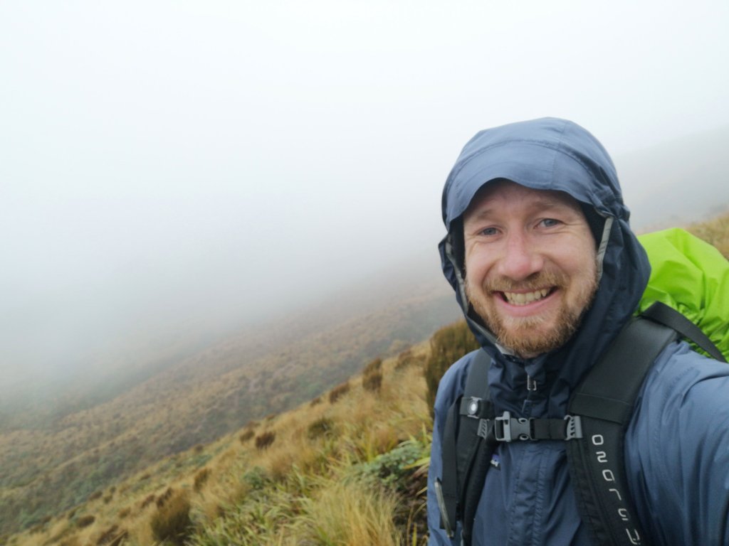 We arrive in the Smoke-Ho car park. Again, there’s no shelter. The four of us huddle under the slight curve of the information boards. I strap up my pack and get to walking. The rain does not stop. At least the trail isn’t a river, yet. I realise a few minutes in water is coming in through the tongues on my boots. I never lacedvm them up properly like I thought I might in the shuttle. The bottom of my pack cover is hanging loose like a full nappy. Another puddle has formed. I really can’t deal with a wet sleeping bag again. My mood sinks. I wasn’t organised. I’m struggling with the wet. The thought of being wet for days. I’m struggling against the suffering. This is better than the alternative. Being dry but stuck in the van. I tell myself to embrace it. Get wet boots. Get wet socks. You can’t change it now. All you can do is keep your head down, keep your feet moving and get to the hut.