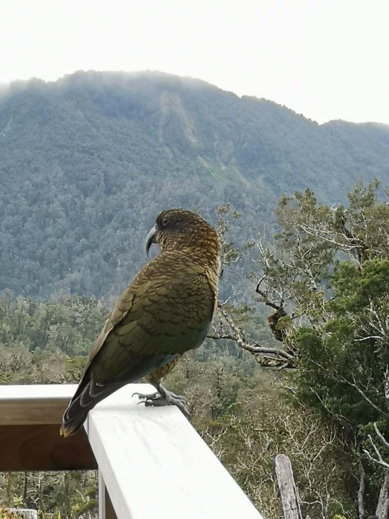 The Gang of 11 arrive, leaving boots out on the deck. The first cries of the local fauna goes up. Somebody has left some toys out. Keeee-a. A falcon sized shadow flashes over the window. The Kea lands on the deck railing. Deep green scale like feathers. A smudge of yellow around a black beak. The bird shuffles conspicuously. Waiting for an opportunity. It makes a start towards a rain cover before being chased off. The flash of red, a hint of blue. He sits in the trees, screeching his dismay of not being allowed to play.