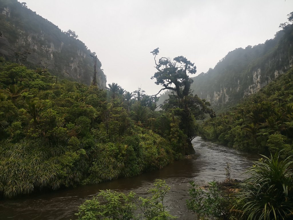 Through the night alarms blare. Regular workers forgetting to turn them off. Other people get up regularly. “Old man’s prostate” one declares. It’s not the worst night I’ve had in a hut but I’m starting to suspect you never feel well rested. I make a fresh, hot Aeropress coffee. Farewell instant, forever. The wet weather gear goes back on damp. The forecast has been upgraded from rain to periods of rain. Right now, ready to leave during one of those periods. 15 minutes from the hut I feel like I’ve forgotten something. I tick off items, head torch, keys, wallet, phone. The mattress. I didn’t flip the mattress. I hope someone else will have cleaned up after me. Or if it is something more important, hopefully they bring it along to Pororari Hut.