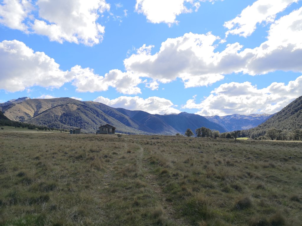 I break for lunch at Christopher Hut, feeling wet with sweat for a change. Halfway through the day in terms of time and distance. In the intentions book I find I might have company tonight. I decided to push on through to Anne Hut to get a 25km plus day with the pack in my legs. To see how I do. Most of the crowd I’m behind have done the same. One couple stayed here last night, they might be at Anne Hut when I get there. The second half of the day is harder. The valley bottoms are exposed to the sun, by the afternoon I’m hot. The walkway clings to the steep edges of the Waiau River bank. I pass through barren grasslands pocketed with thorn trees I’ve never seen before. Sweat trickles down my face. Mountains rise up all around me. Some stop at the treeline, some keep climbing to top out with crags lined with snow. I spot what I think is the first stoat I think I’ve ever seen in the wild. A long flat fox bounds over rocks disappearing into a thicket. This is the first track I’ve walked I don’t remember seeing a single trap. The track continues on, joining up with Te Araroa. You can’t miss it when it’s everywhere. I close in on Anne Hut, my stop for the night. All I’ve got left is the motion. One foot in front of the other and the hope it isn’t much further. A swing bridge crosses what is now the Henry, or maybe the Anne River. One final time for today at least. The bridge ends on a narrow edge in the cliff face. A staircase delivers me into another ankle deep bog and I have to wonder if I might have been better off simply walking across the river itself. There’s another milk white creek to cross. I can see the hut in the middle of the open valley ahead. I can’t see the bottom of the creek, or any rocks below the surface. I decide to jump and hope I don’t die. I land in the muddy bog of the opposite bank, on my feet at least but now with mud sprayed up my legs and inside my shorts.