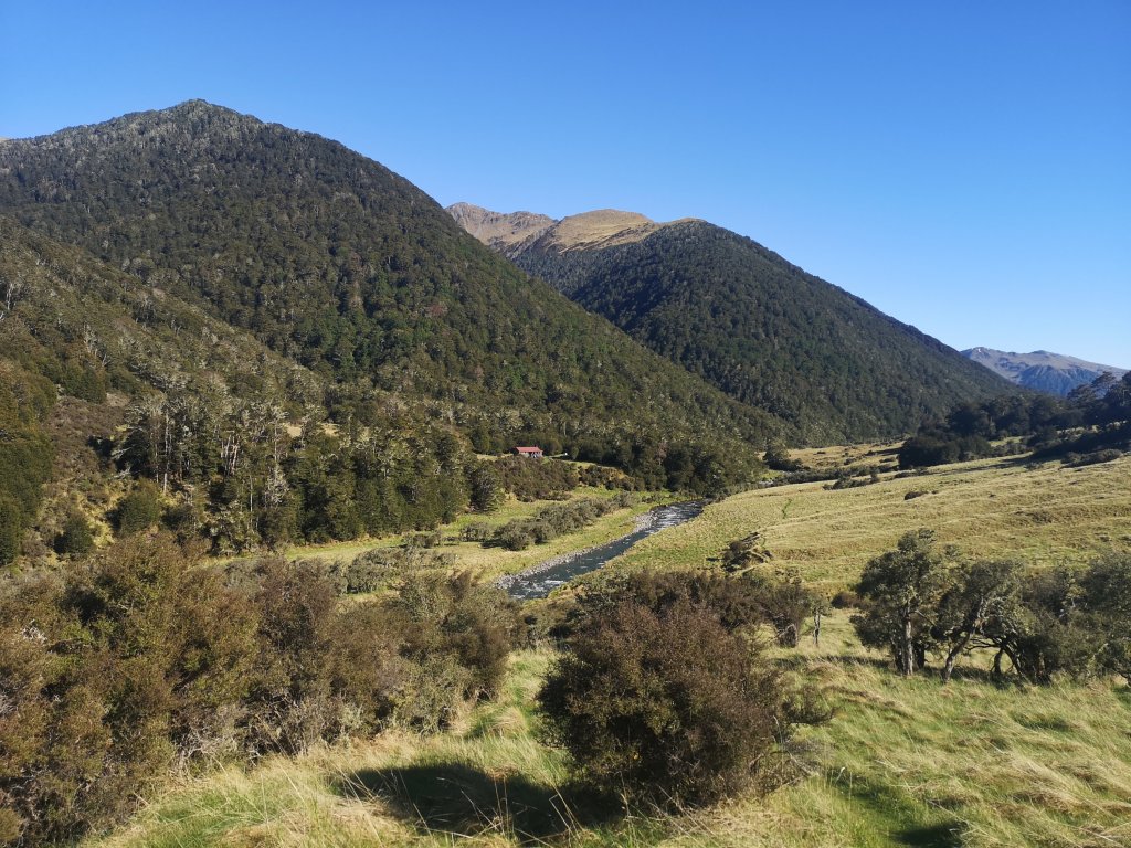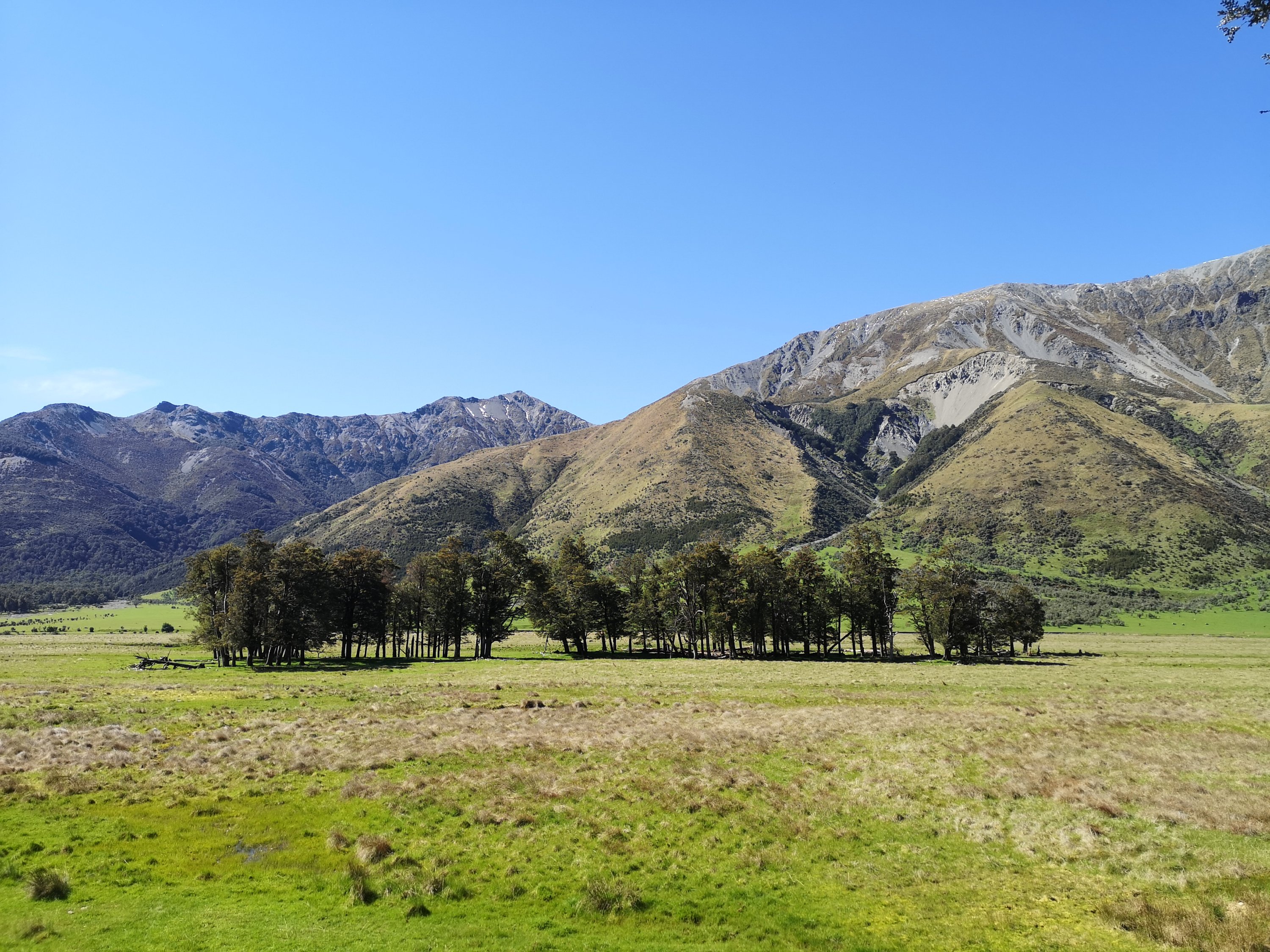 Over the saddle, out of the forest the world is much the same. A deep, fast blue river. A grass covered valley bottom. Climbing walls of beech trees. Tops of rock and snow. It’s like listening to your favourite song on repeat. I find myself stopping periodically to sneak peeks back at the landscape. To make sure you’re not bored of it. I suspect if I was bored of it, I wouldn’t be stopping to look at it. Once more won’t hurt.