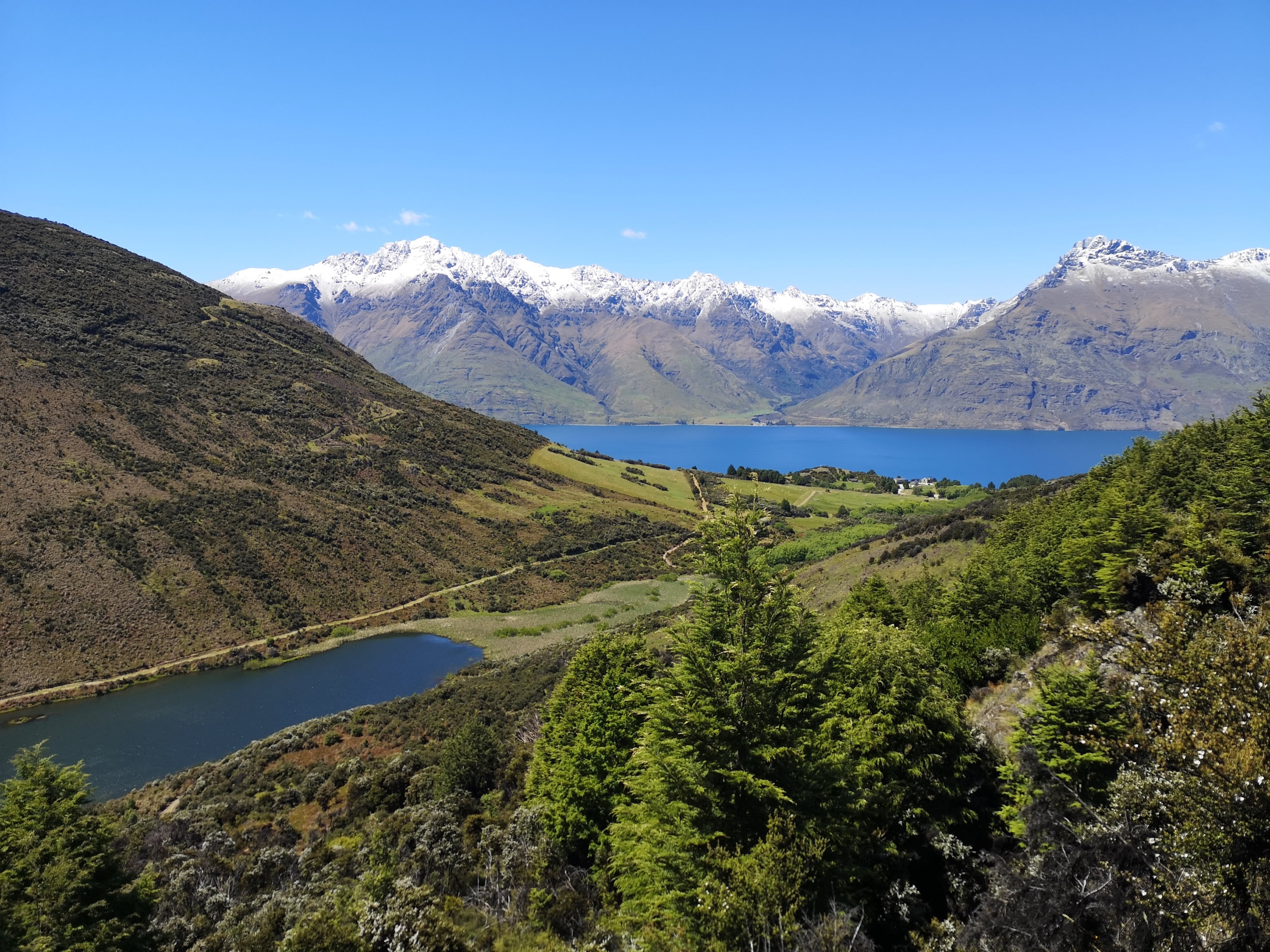 Bright sunlight breaks over the top of Mount Larkin. The cloud has lifted, leaving behind the pristine white summits of the mountains that rise all around Glenorchy. What a beautiful day. I spread the remaining damp gear over the roof and the grass, hoping things would be at least touch dry by the time I hit the road. They were. I drove back towards Queenstown with a huge grin pasted across my face. I stopped to stretch my legs around the Mount Crichton Loop Track. Mostly in the shade, a few stops to take the briefly available views then I carried on. I followed the shore of Lake Wakatipu, the length of the lightning bolt lake carved out of the rock by the former expanse of the Dart Glacier. I passed through Kingston and then back to Lumsden. My freedom camping home in Southland. I crashed in the night. The restless nights of the Rees-Dart Track catching up with me. I dropped in at the Route 6 Cafe again for another mega big-time breakfast. I pulled together something like a plan for the day. Get to Invercargill, buy gaiters, buy food, find somewhere to sleep for free.