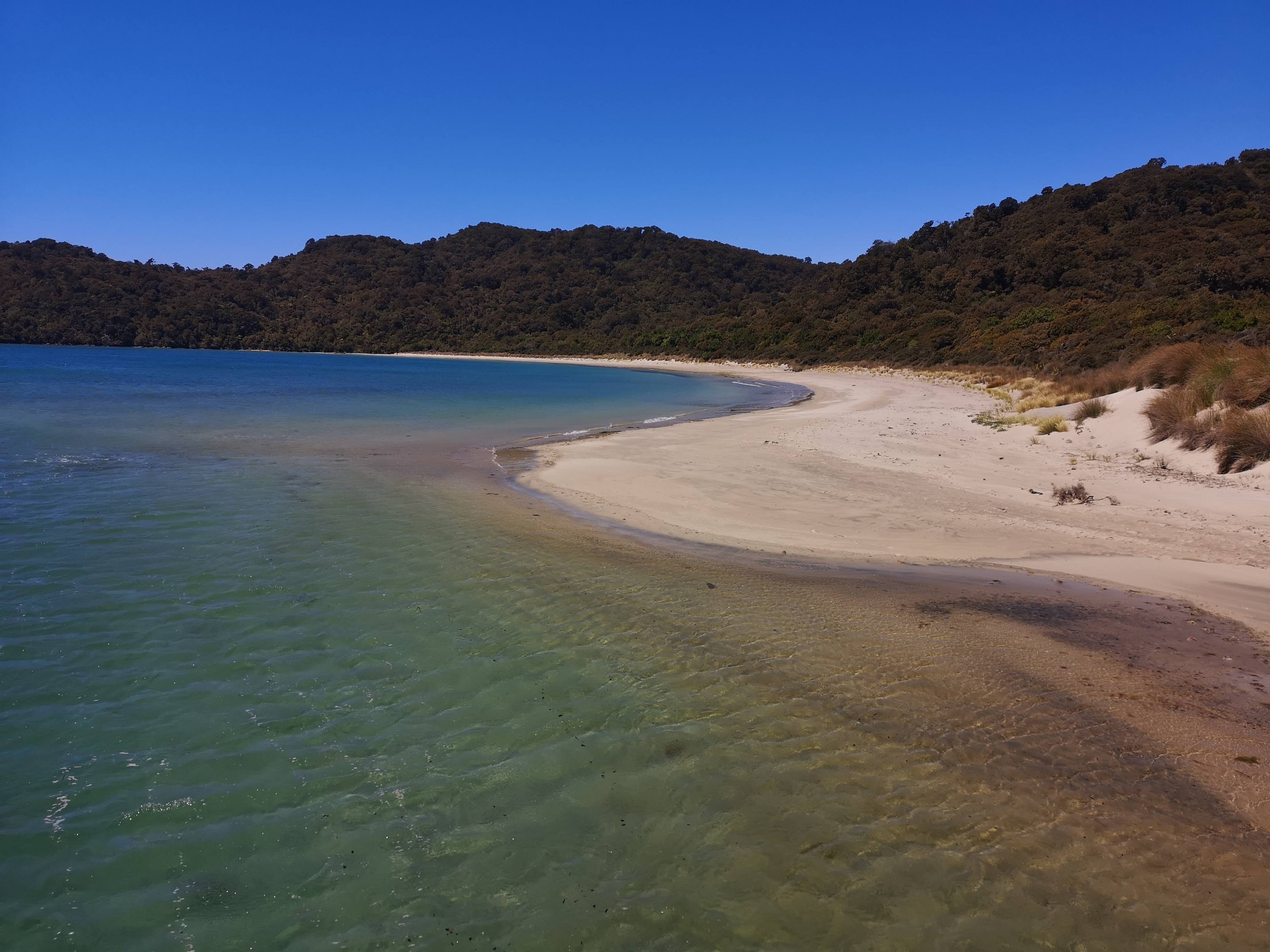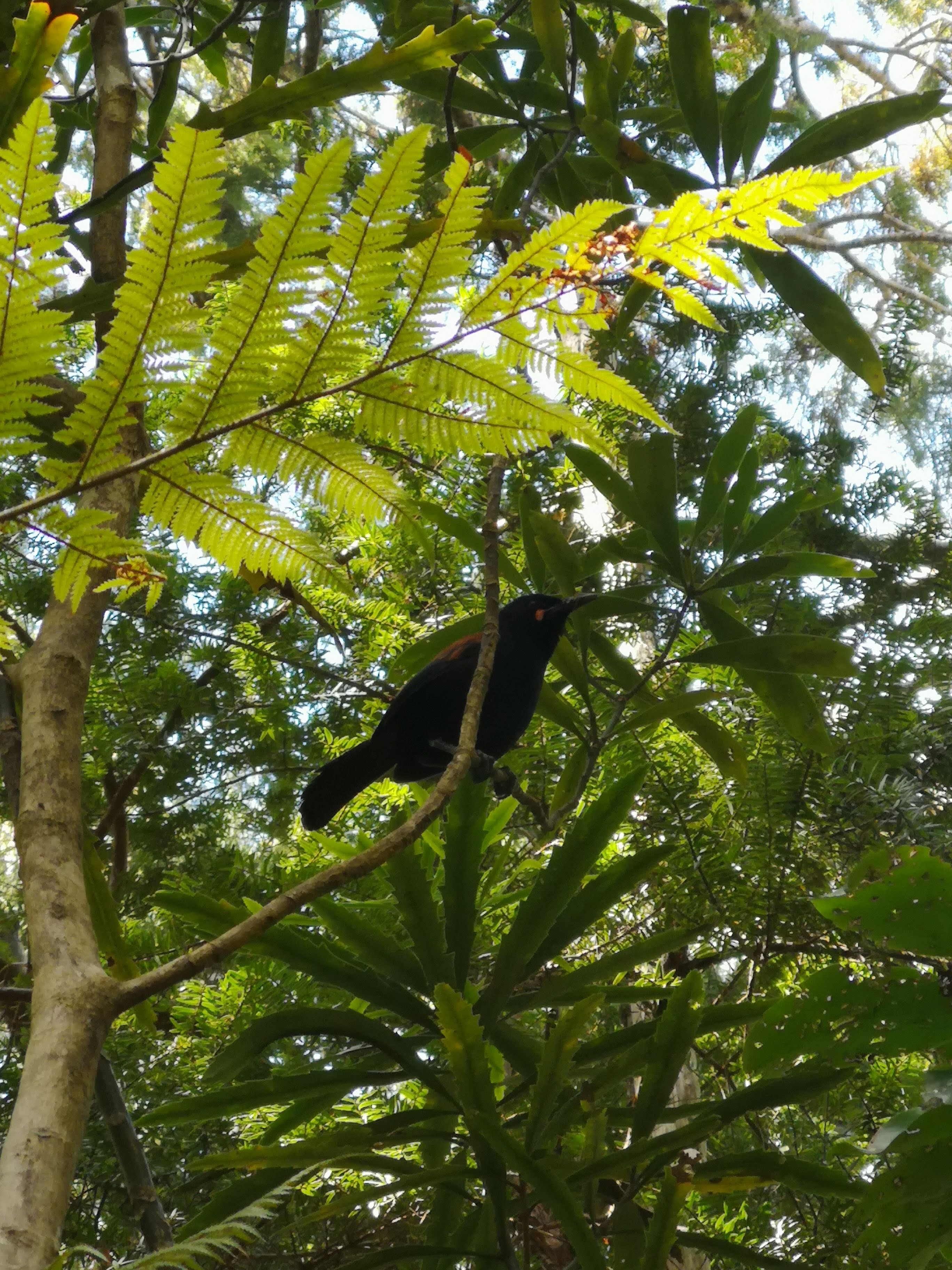 Away from the water the clamour increases. The dawn chorus continues all day. Screeches and screams. Whistles and whirs. Ulva Island is a magical place. A window into the past, how thing used to be, before we ripped the magic out of the land. A possibility of how it could be again, if we have the courage to allow the magic back. A flash of lime green through the canopy. Something small stops on a branch. A kakariki. A tick off my mental list of New Zealand birds. The chiming of bell birds and the gurgle of tui never stops. Other sounds come, some i know, some I don’t. Jannik points to burrows, potential nests for kiwi. Not that we’re likely to see one in the middle of the day. Kaka sit meters from our face, stripping the bark from trees, hunting for bugs. South Island Robins sit at our feet, investigating our shoelaces. Are these lunch or no? At each unusual sound, one of us, sometimes both stop and stare into the canopy. Trying to find the owner. A yellow head appears in the nook of a tree. Another tick. Then in the leaves someone new. A rare one, I can’t remember his name. Little red cheeks. Jannik calls him the blushing bird and I think that fits. Later I learn he’s a tieke. The saddleback. I still prefer blushing bird. The screams from on high remind me again and again of a bigger, older ancestry. Dinosaurs do exist, they are all around us. We have seen and heard the children of the forest. We return to the boat. Our leaves of safe passage are taken from us. Our names are ticked off the register. It seems no one is left behind. As we cruise back to Golden Bay, Jannik points out the penguins leaping through the shallow water. Again, his water trained eyes catch an octopus pulling itself through rock pools. The magic coming back with us.