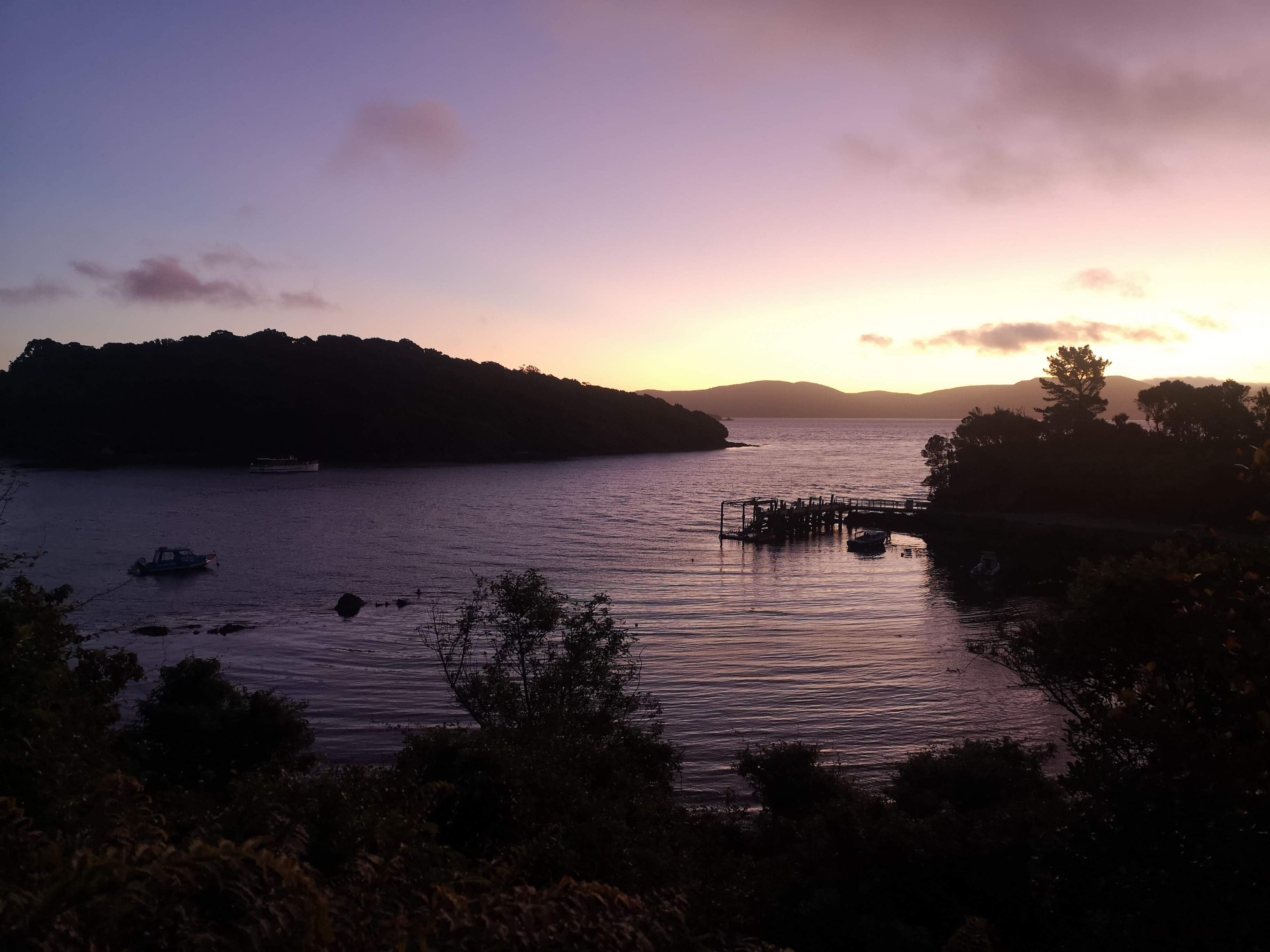 Nadav and I had agreed to meet at the Kai Kart for fish and chips. I was waiting to hear from him when I realised it closed at 7pm. I was hungry, if Nadav was still on Ulva Island he wouldn’t be back until close to 7. I stopped waiting and went to order. “I’d like fish and a full scoop of chips please.” “I’ll show you what half a scoop looks like first, then you can decide if you want a full one.” the man says. I’m definitely going to a full one. My only regret is he didn’t tell me how small the piece of fish was. He’d have done better had he told me to order two of those instead. Is the fish fresh? I hope so. Does it taste good? Does white fish taste of anything at all? I don’t know. Are the chips good? Yes. I’m about 10 short of finishing the whole scoop. Nadav sneaks in and gets his order in. We sit in the last light of the sun. Richie passes by, picking up and order that he’s instructed to take back to his hotel room where Tee is waiting. I wake up early in the hostel after a full night of sleep. I clean up what I can, pack away and drop my bag at the ferry terminal. Rain threatens for most of the morning. I sit on a bench by the harbour for a while, letting the sandflies snack of my exposed knees. A mistake. I get up and start moving. Still too much time left until the boat leaves. I walk out to Ackers Point for something to do. Returning with just enough time to watch kids jumping off the pier before the ferry departs. The sailing is smooth and over quickly. I get back in the van, top up on supplies and move on again. I’m at a half way point, the point at which I turn around and start slowly heading back. I’ve come as far South as this adventure will allow. Now time to back fill, to follow new roads. To see more, new things.