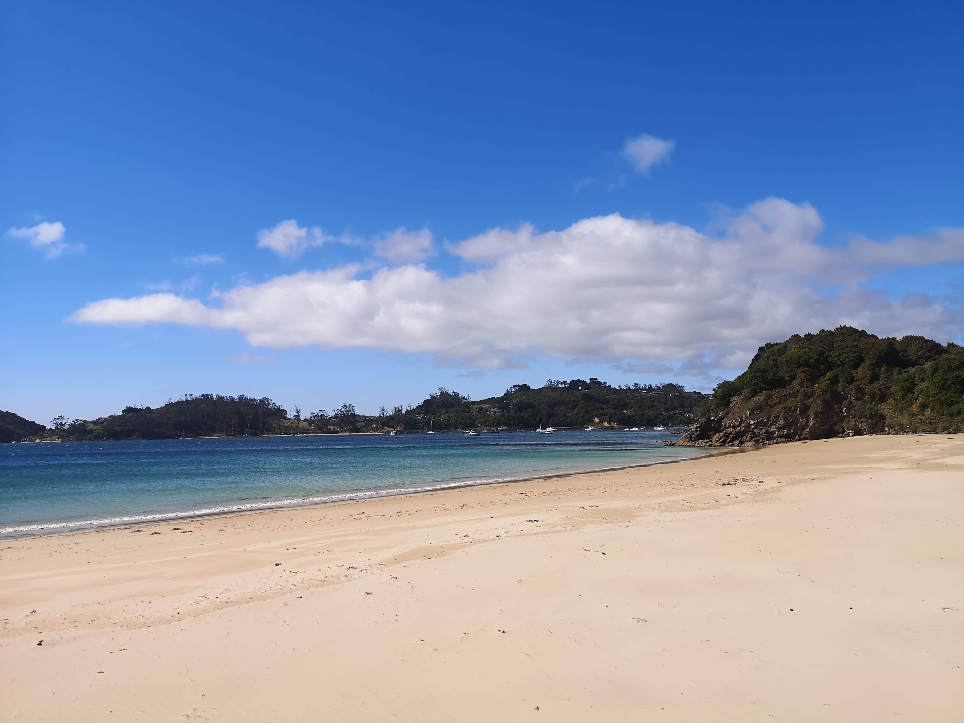 At North Arm the kiwi are loudest. Marking their territory with a curdling scream. Beneath their cries a ruru hoots his own name. How near, how far? I don’t bother to get up. In the morning the rain has ceased. The sky between the trees is big, empty and blue. A chance for the tent to dry before it’s packed away again. I take my coffee in a pocket of sunshine. Nowhere to go today but out. Nothing to do but wait. The Boys go early, with a ferry to catch. Nadav goes next, he wants to get to Ulva Island this afternoon. I enjoy the slow morning with Richie and T. More names to add to the list of good people I’ve met while hiking trails in New Zealand. I start walking close to midday, the tent isn’t dry but it’ll do. The bush is verdant. The trunks are thin. The new growth of secondary forest. A post-industrial recovery. Thicker, older trunks of forest elders that survived the lumber mills tower over their siblings, their offspring. I assume that not all of the new trees will make it to the canopy. There seems to be too many of them. All fighting, all racing to the top. The track turns through liquid mud. How does it form? Why isn’t it consistent? What even is mud, and perhaps more importantly why? I skirt the edges where possible. Keeping the boots clean. Clean in a not adding new dirt sense, not that they were clean to begin with. The salty smell of brine comes over the leaf rot. The beaches smell like mean low water. Islands bob in the inlet. The green merge with the red blushes of the rata blossom. The water reflects the sky. Beyond, the gentle, rolling hills of Stewart Island’s North-West climb. Nowhere near to touching the clouds. Bigger than I imagined but small by New Zealand’s scale. I pause, tell myself to listen but really I’m tiring. Late nights and tent sleep aren’t a walking combination. When I do listen, I hear the flutter of tui wings and koramiko dings. The high pitch squeak of a rifleman. Distant, the screech of a Kaka. A forest full of life. Life overflowing from those pest-free islands. Reconquering. Taking back. I have to take the long way. The weather is gorgeous. I don’t want to finish yet. The track an old road, a new path weaves through, avoiding the deepest mud. The bays are Adriatic. Croatian clear water with boats afloat. The sound of a strimmer and the smell of freshly cut grass tells me I’m back in Oban. This wasn’t an oh wow walk but it was Great. I unclip my pack. Fold away Iain’s poles. I unstrap my gaiters. Untie my boots. I step into the reception to a sign that says be back at 3pm. Only a few minutes to go.