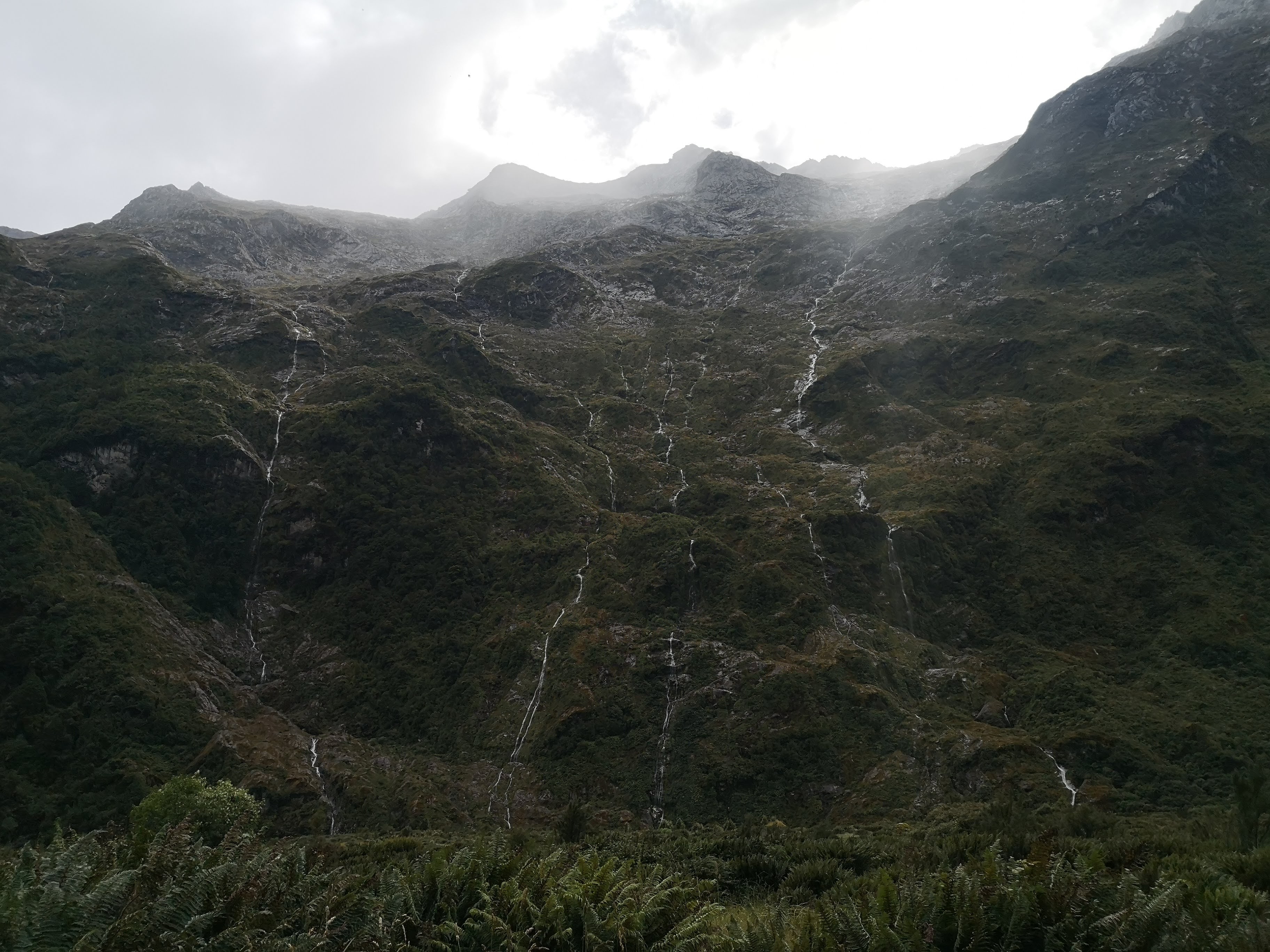 Almost everyone is on for an early start. Nobody wants to miss their boat, their bus except for me. I’m supposed to be on a late boat and even later bus. With my routine and walking pace I know I’m going to be out at Sandlfy Point before the first boat is due to leave. The late risers are all surprised to see me. Still here? Haven’t left yet? It’s only 7:30. Few more things to get done first. I haven’t put my boots on. I haven’t cleaned my teeth. Some of them have their boots on and are walking out before me. “See you soon,” I wave them off. Someone else asks if I’m giving them a head start like any of this is deliberate. People are on my time. We bunch at the Boatshed. I was expecting to find a shed with boat in it’s name on the water, but it’s some distance away. More impressive is that in high flood the Boatshed is often in the water. Across the swing bridge in the increasingly hot sun we bunch again at Bell Rock and Mackay Falls. Bell Rock used to be up the other way, beneath the falls. The inside was carved out. Now it’s upside down and you can crawl inside. It doesn’t feel very big with three of us in there but the supposed record is somewhere in the mid-20s. We spread out again as the sun touches down in the valley floor. Cicadas burst into song, competing with the dwindling waterfalls for the loudest sound in the valley. The walk out is easy, almost flat the entire way. A few steady climbs. The stench of drying mud and stagnant water. Rain hasn’t fallen in one of the wettest places on earth for almost two days. So many waterfalls, creeks and streams are dry. Damp rock glistens but doesn’t flow. I’m thankful for the shade in the bush. I fall in with the Wairarapa Couple. They’ve calculated an hour and a half wait at Sandfly Point at this pace. It isn’t called Sandfly Point for nothing. Nobody wants to spend more time than necessary there. They start taking photos. I start eating snacks. Another group catches up. I let them pass to drop in at their slower pace for a while. I can’t do it. My legs want to stretch, to reach out and gobble up track. I leave them at Giant’s Gate Falls. One of the coolest waterfalls around. A torrent leaps out of a crack in what looks like solid rock. The flood damage here is obvious. Boulder fields are littered with tree debris. Huge areas flattened by relentless rain. The creeks cut dry beds in massive flood channels. Valleys within valleys within valleys. The last mile post appears and I’ve still got too much time on my hands. I reach the shelter. I talk with those earlier arrivals about other tracks. We’re in luck, there’s an even earlier boat with room to spare. I check to see if I’m allowed on and I’m on the list so it’s good. I find Kate is the bus driver back, she’s got room for me on the earlier bus which still doesn’t leave for another hour. I eat a pie and drink a pint in the cafe. We get on the bus, burst out of the Fiordland mountains. One of our party is dropped off at the Divide to head straight on to the Routeburn Track. No matter how hard you think you’re going, someone is always going harder. I fall asleep on the bus. Head lolling in the aisle. And that’s it. I’m finished. I’ve completed the South Island Great Walks and some. I head out in Te Anau to celebrate on a Friday night, expecting a crowd. I’m the only one in the Olive Tree Cafe. The lack of tourism hits me now like it hasn’t before. There are places, like this cafe, like Te Anau in general, that exist almost entirely on international tourism. Their demand has gone. Their supply surplus to requirements. They got through one winter without. Will they survive another?