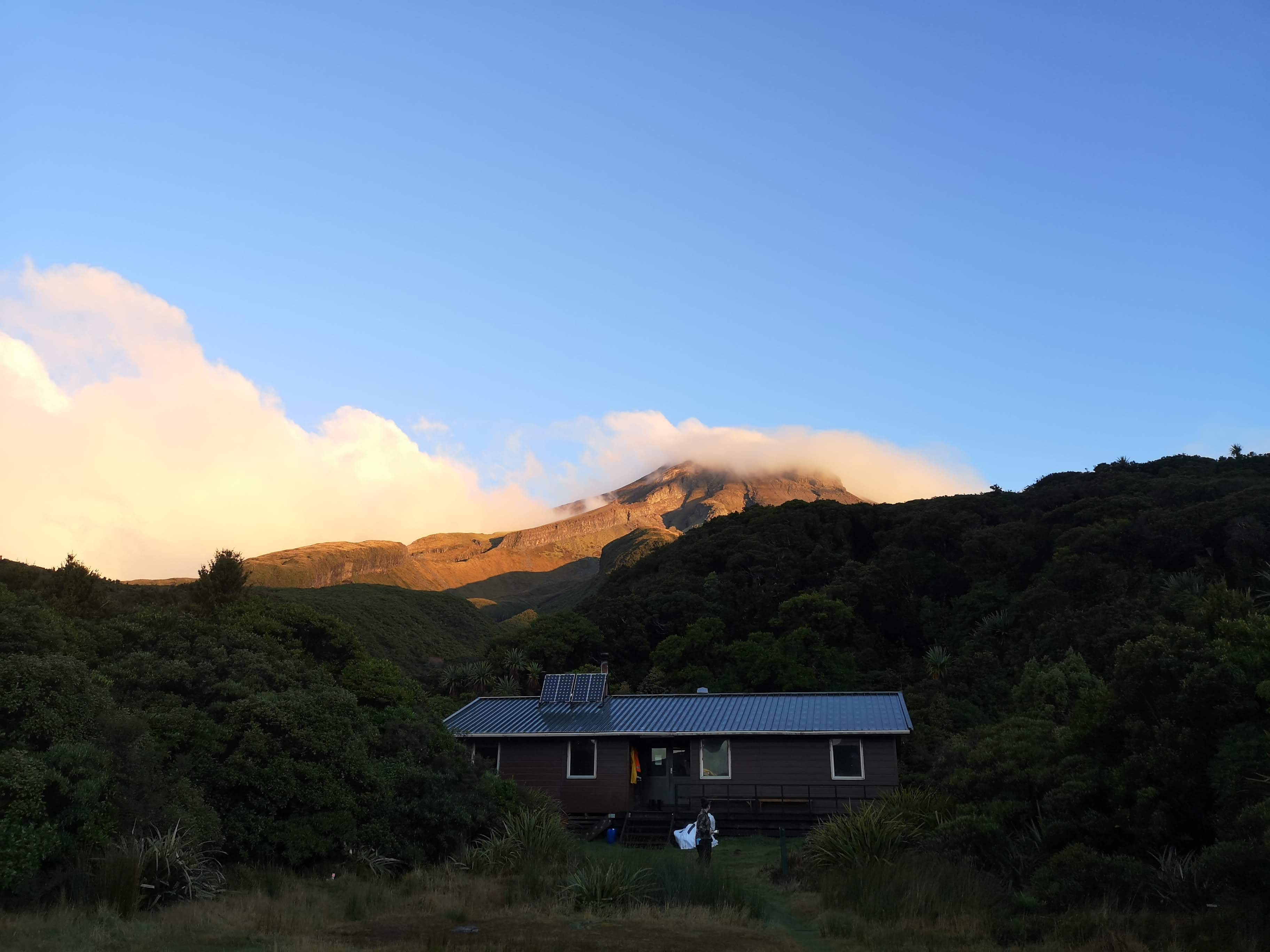 When I arrive at Waiaua Gorge Hut I find it empty. I have the place to myself for as long as it takes to get the fire going. There’s no kindling, no axe, but plenty of wood. There’s a single candle. I remember nearly burning a house down with a candle once, so I’m sure that will help in getting a fire started. I drip melted wax on to wood and cardboard. This seems to hold the flame for long enough. The splinters of pine begin to crackle. Then a father turns up with his children. Not long after, their mother and a friend arrive. Mum and her friend have come from Egmont Visitor Centre. They’re going around the mountain in two days. There will always be someone out there going harder, doing better than you. I’ve learned now to celebrate it. “You’re crazy, good for you.” I tell them. They apologise for disturbing my peace, which is nice as I was hoping for a quiet night. The kids push Dad to play the Yes No Game with them, which they lose on the first question every time. Then they sit around the table playing some form of Scattergories. I find I’m unwittingly justifying answers whenever an argument breaks out. “What’s a dugong?” Dad asks. “It’s like a manatee,” I reply after Mom’s friend struggles to explain. The family move towards the fire. “Thanks for lighting the fire for us,” the father says. “Sure,” I say, thinking I didn’t do it for you.