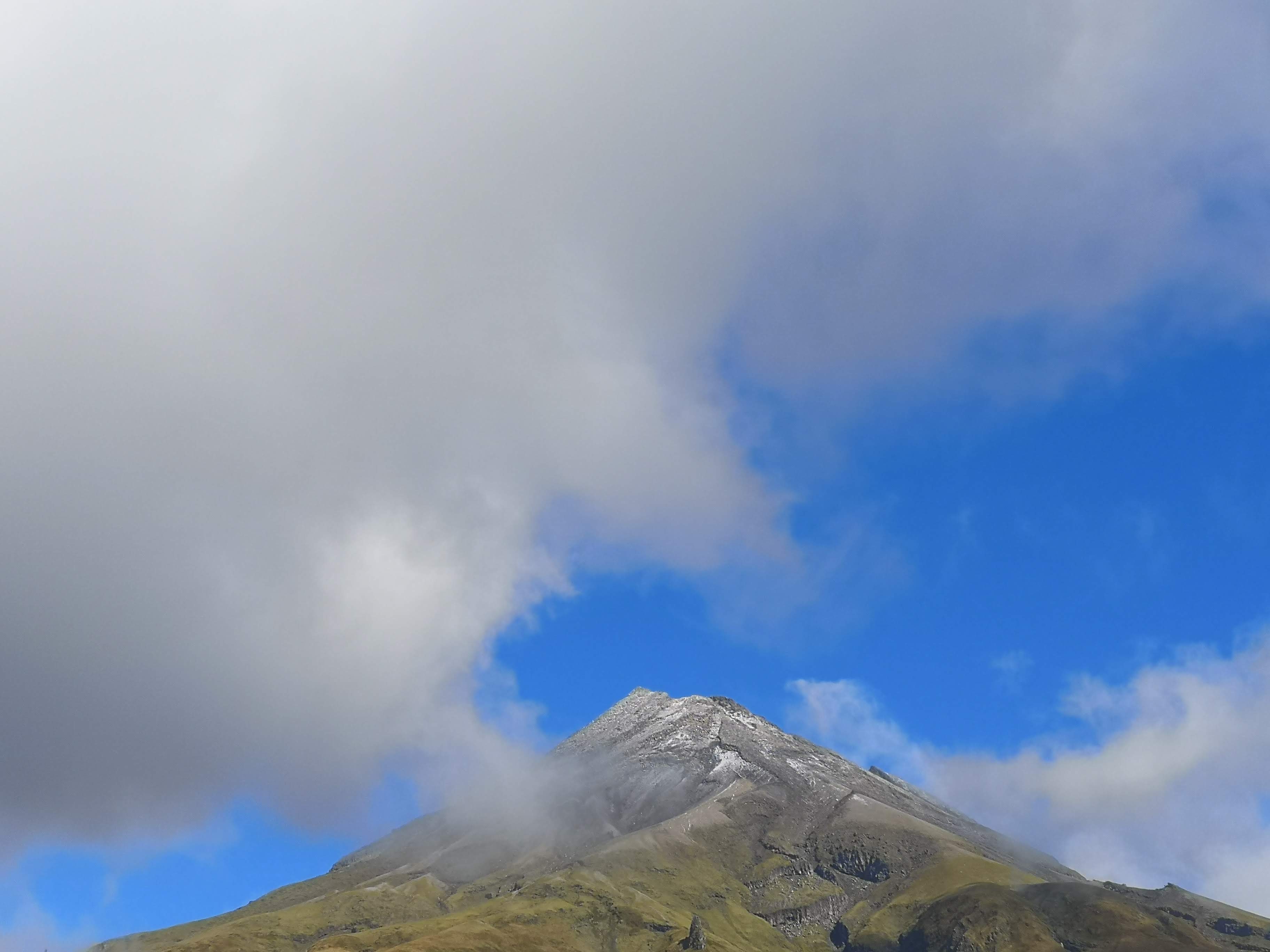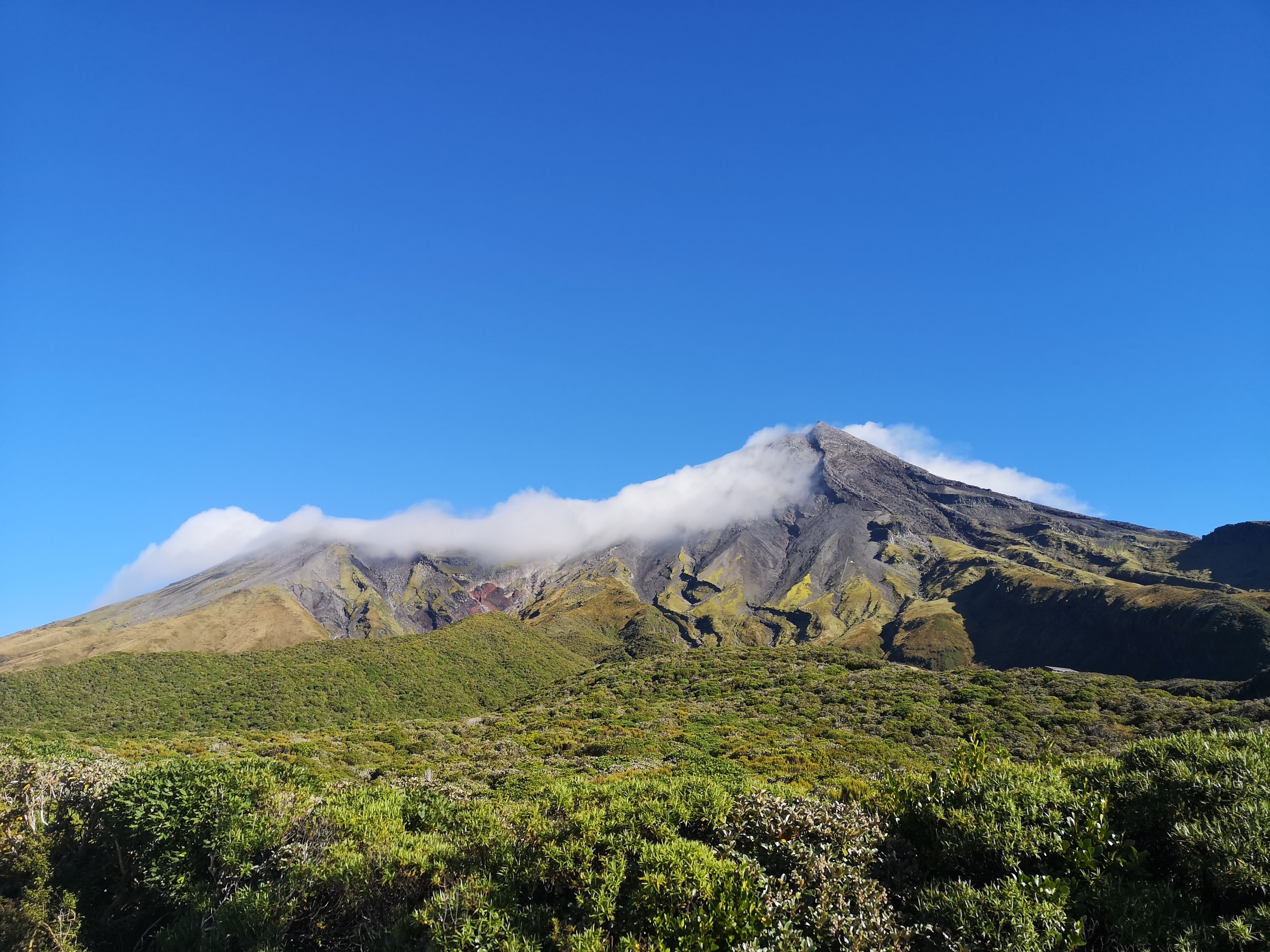 Wind rattles around the Maketawa Hut. Rain slams in to the walls with such force I wonder if the door is open. Again I find there is a scuttling and squeaking of rodents in the walls. I’m only an hour’s walk from the van if they make it in to the communal area and in to my food. Safe to say the night’s rest is not the best. In the morning I doze, no rush. The front door clicks open. Already? I guess I’d better get up then. There’s a man making breakfast in the communal area. He’d been to the dawn parade. It takes me a minute to realise today must be Anzac Day. He settles in and talks to me about how Maori are trying to create a divide, how things aren’t as simple, as easy as they used to be. I feel like I’m getting the other side of yesterday’s conversation, the conservative white farmer. The conflict of views, of stories, is astounding. As more and more day trippers pop in for a look I make my exit. The final walk out is easy. I start to sweat on the final climb. No matter, everything will be going into the wash later. I pop out of the bush into the overflowing with cars carpark of the Egmont Visitor Centre. The sun is shining. The summit is exposed. A light dusting of snow litters the peak. I unpack in to the van. I go in to the visitor centre. In a few days my backcountry hut pass expires.