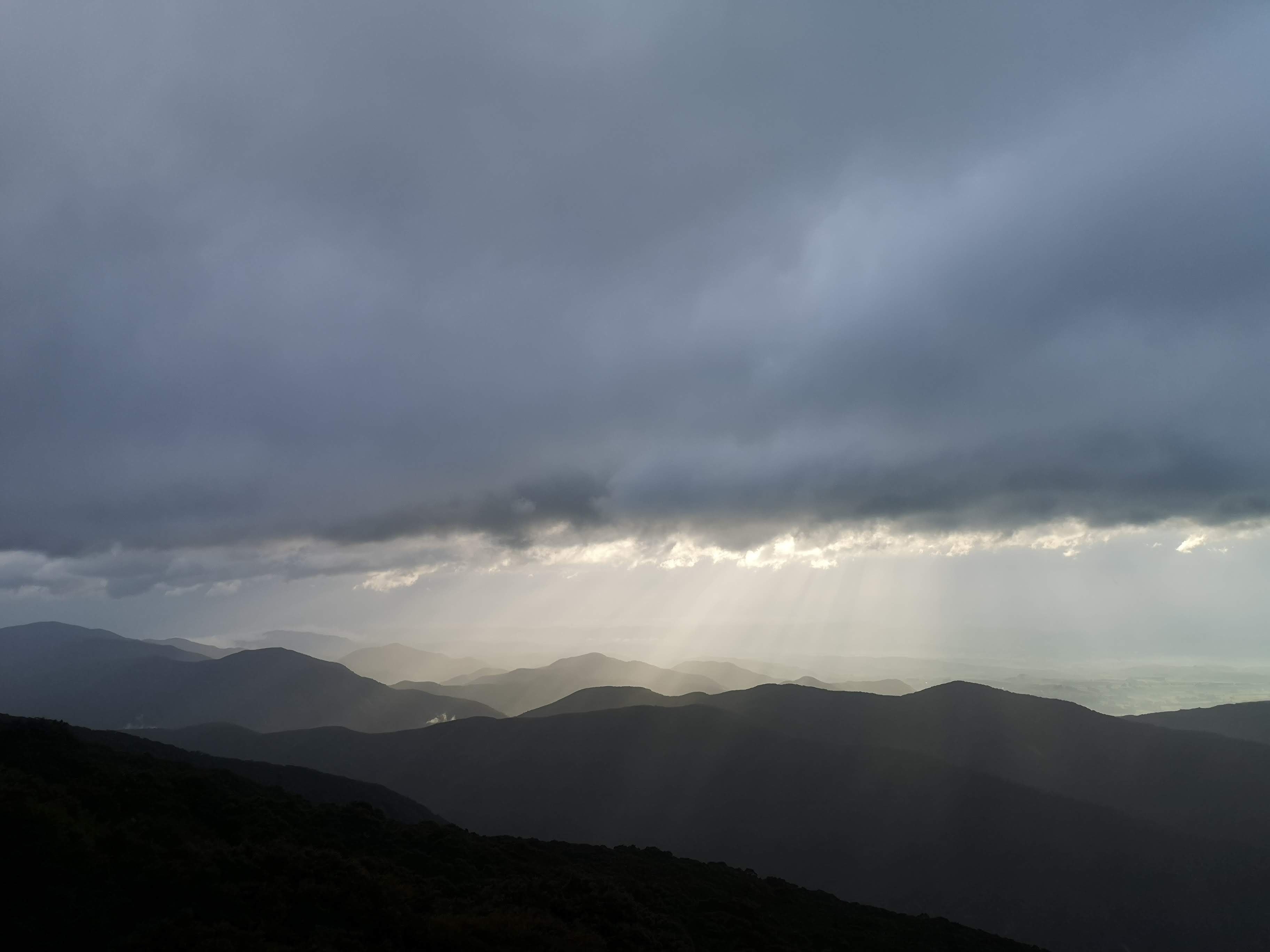 We stop in Greytown for a coffee and a snack. Iain picks up a copy of the paper so we can attempt the cryptic crossword when we reach Powell Hut. From the car park at the Holdsworth Road end we begin on a gravel path with carries us a little deeper before the climb begins. The signposts for the circuit shift in times and space. We gain a kilometre, we lose an hour. Is it even worth paying attention? There’s a booked space in the hut at the end. We’ll get there when we get there. We haven’t gone far before Iain is puffing, sweating, regretting having taken the whole winter off. I step aside and let him set the pace. Going outside some time requires a bit of a push but it is always worth it. The Rocky Lookout is home to a small crowd, the most people I’ve seen in the hills for weeks. The green outer walls of the Tararuas touch the low sky. The Gentle Annie track is well named; a steady climb to another track junction. “Let’s take a break here,” I suggest. I’m trying this new thing. Stopping every 90 minutes to snack and drink and rest. This way I’ll actually eat my snacks and not have to carry them. Iain ponders the other trail leading to the Waiohine River. He’s thinking about his own next outing. You only need to spend a few minutes looking at a map of the Tararuas to realise there’s a huge network of tracks linking huts and any number of adventures are possible. Time to carry on. We follow the ridge to the Mountain House shelter where a family our enjoying a picnic. One of the children shouts out “We’re going to Powell Hut!” “So are we!” I say, “We’ll see you there.” From here the track launches upwards. Staircases of three and four steps make short work of the altitude. The forest disappears into wraith-grey clouds. Up we go until we break free of the trees and into an ocean of cloud. “I think it’s time for another break,” Iain suggests. “I reckon we’re only about 300 meters from the hut,” I tell him. I don’t tell him those 300 meters are straight up so we push on. The swirling sky breaks apart to reveal views down valleys and, eventually, across the Wairarapa. We’ve already seen far more than I was expecting. I point beyond Iain. “There it is!” The red ridge of a roof. Powell Hut is palatial with multiple bunk rooms, gas stoves and solar lighting. For now, we have it to ourselves. We make our beds in the smallest bunk room, increasing our chances of a peaceful night’s sleep. I set out to investigate the wood shed. There’s some, but not much firewood. Iain sets about breaking it down so we’ve got enough to warm the spacious living area.