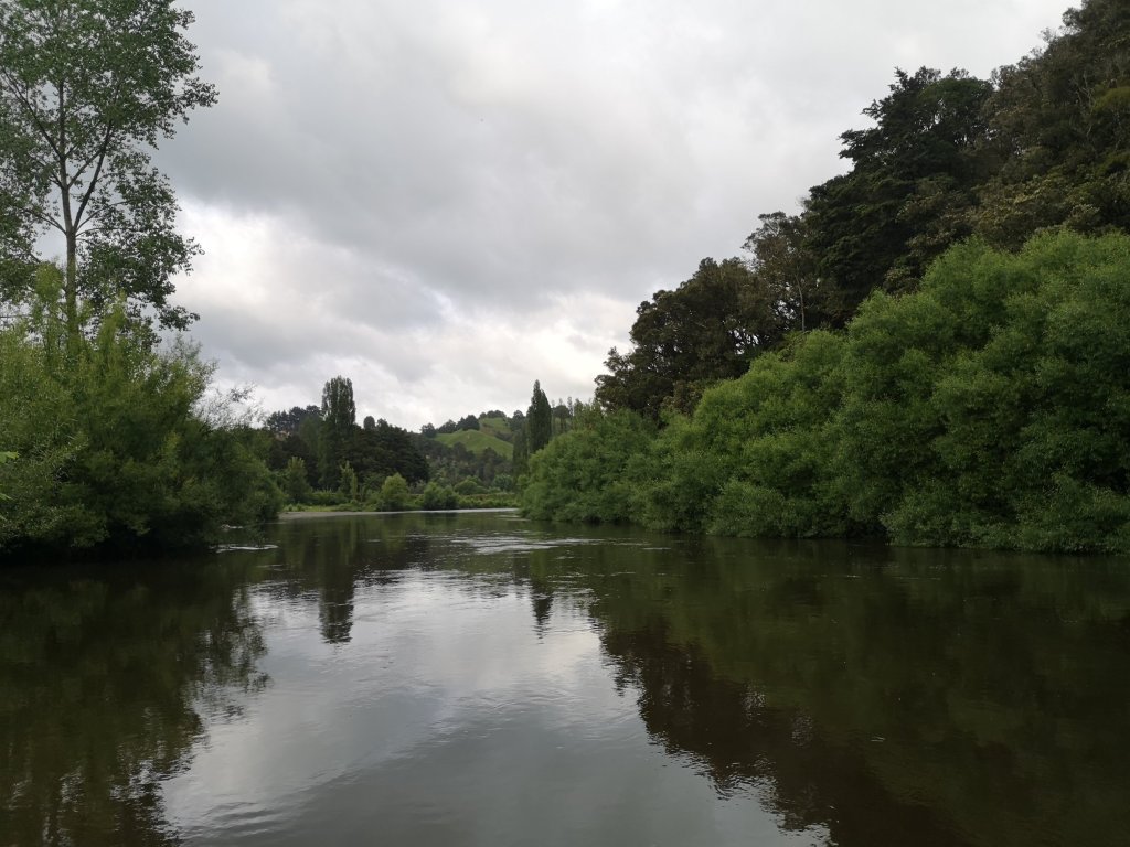 I wake once in the night to the sound of rain. I don’t think it amounts to much but it puts me on edge. I emerge from the shed, thick mist hangs low. Iain gets up. We pack away, eat some breakfast. At 7:15am we climb up to the base for our briefing. Karen makes fresh coffee. The late arrivals are already seated in the briefing room. I never heard them come in. “Sorry for shining the torch in on you last night,” one of them says to me. “No worries,” I reply, “you didn’t disturb me at all.” The briefing is delivered by Jono, the eldest son of the Taumarunui Canoe Hire operation. He and Ron, his father, sport matching moustaches. I stroke my absent beard. “When approaching a set of rapids, aim for the V,” Jono instructs. He plays a high angle video demonstrating both how to, and how not to. This, and the fact that in heavy rain the river can rise half a meter an hour are my main takeaways. Nervous, excited, I just want to get going. We load up a minivan and get going. On the way I spot empty tree boxes beside a barn and scan the hillside for the signs of planters. “Are we there yet?” Iain asks. “Yep, you can get out here,” I tell him. Still some 13km from Whakahoro. We pass the sign for the township. Population: 8. We pause to pick up four more Te Araroa walkers at the campsite. The population near doubled. I grab fresh info. “Where did you guys start?” I ask. The pair of ladies set off from Cape Reinga, skipping Auckland. The other two left Hamilton independently. “What about you?” they ask. “This is it, day one at last!”