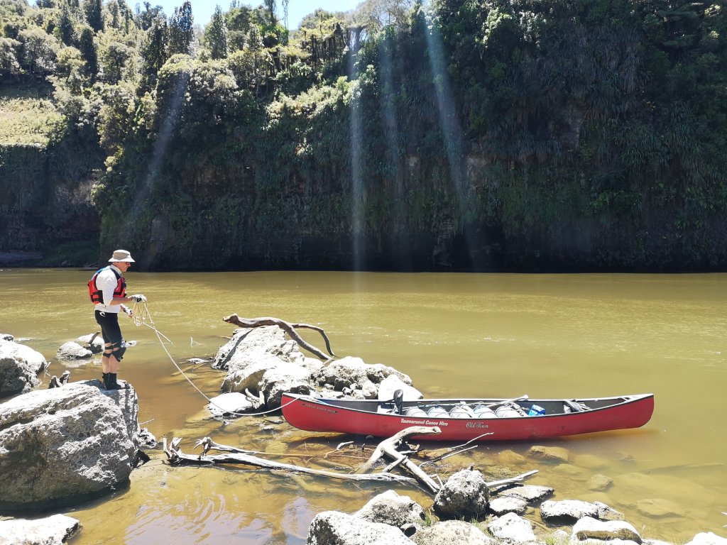 At around 9:30am we’re still the first ones ready and on the river. I’m not sure it’s possible to go any slower. As we pass yet another canyon cut out of the valley Iain asks “should we go and have a closer look?” A fast turn and a hard drive has us out of the main current paddling up the shoreline. I step out of the boat and wade through the shallows. Iain keeps paddling, getting into a narrow gap between rocks at the foot of a waterfall. Is this what everyone else is doing? Is this how you’re supposed to get the most out of your experience? Iain and I are in agreement. Half the fun of any outdoor activity is the effort required. We didn’t come on a canoeing trip to float down the river. We remain between steep cliff banks. Ferns cling to anything they can. Shades of green remain infinite. Streams pour in. Water trickles over hanging rocks, still. After two days without rain.
