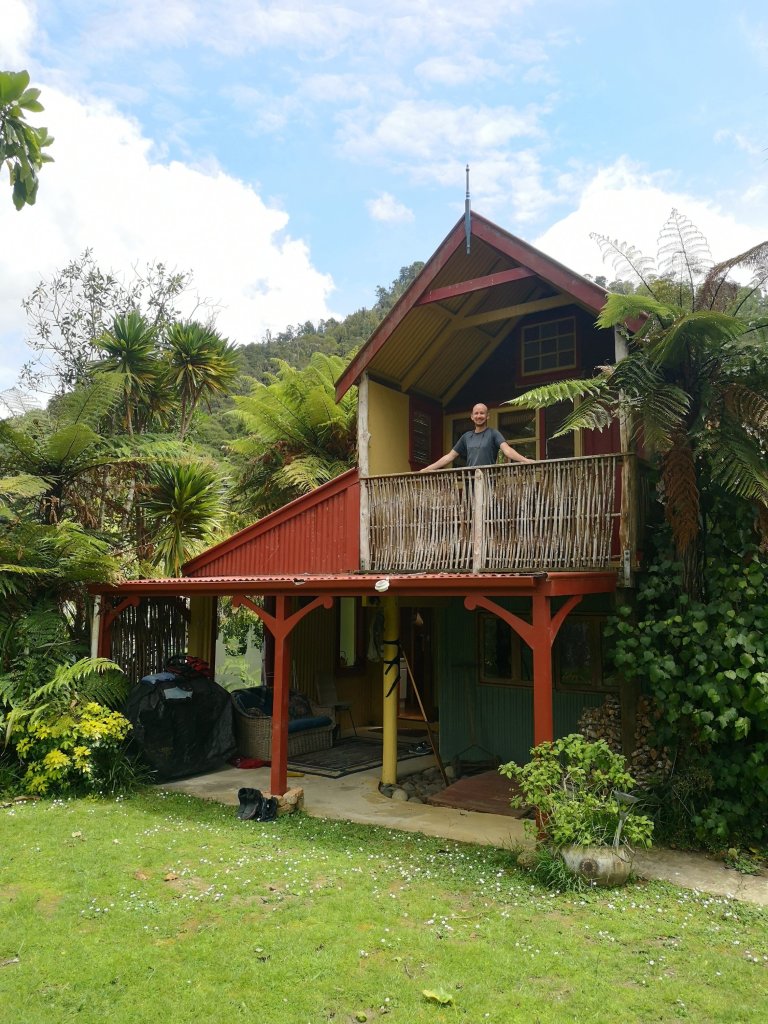 We hit our first sequence of rapids, one after the other with no room to pause. The first time the river has demanded a serious amount of work. We leap over the crashing waves. The currents try to pull us in every direction but we hold firm. Once we come out, it’s plain sailing. Literally. The canoe comes sideways, catching the wind. We raise our paddles as tiny sails to gain a little more speed. Even doing nothing for periods we’ve still managed to clock an average of 7km an hour. Plenty fast enough for a big, but not as big as it might have been day tomorrow. Signs of civilization appear downstream. A pontoon, telegraph poles, a cableway for the Flying Fox. A sign for the Flying Fox. We dock alongside a piece of driftwood which makes for an excellent jetty. Our hosts Kelly and Jane assist in bringing our gear up to our home for the night. Iain has booked us into one of the cottages. It answered my long held question of how much room do you need to live? About this much. An open plan kitchen, diner, living area. There’s two beds on a raised platform behind. The bathroom is in a separate room outside. There’s even a second bedroom upstairs, so slightly too much room then. But there is two of us. Iain and I both feel immediately at home among the exposed timber, pastel painted plaster walls. None of the furniture matches. If I ever get around to writing the Next Great American Novel, this is where I’d do it. There’s even time and sunshine to dry out our tents, put our feet up, post a few photos on the internet and enjoy a fridge cold beer.