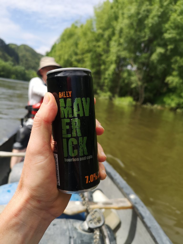There’s some fun to be had on the river today. The waters have continued to drop. The rapids aren’t exactly bigger but more obvious. Obstacles have become more exposed. Pressure waves have grown larger. We bounce over. Sometimes my paddle doesn’t reach the water, sometimes I’m elbow deep in the river. The biggest of bounces gets a “woohoo!’ from me. We come out the far side in to a long straight stretch. I keep an eye on the distance, the time. In the first hour we covered 8km. Pumping, despite being in agreement neither of us feel like we’re working that hard. There’s a rickety old swing bridge up ahead. Sections of the side netting are missing. As we pass beneath, we can see planks are missing too. Iain and I hope the roar of an engine is a quad. A farmer perhaps who might come racing over but the motor fades. As we spin and drift, still taking it easy, I watch a duck swim out from the left bank. Only, it isn’t a duck. “Is that a goat?” I point with my paddle towards the head punting across the river. “Actually, that might be a deer.” It hauls out and prances up the right bank. Definitely a deer.