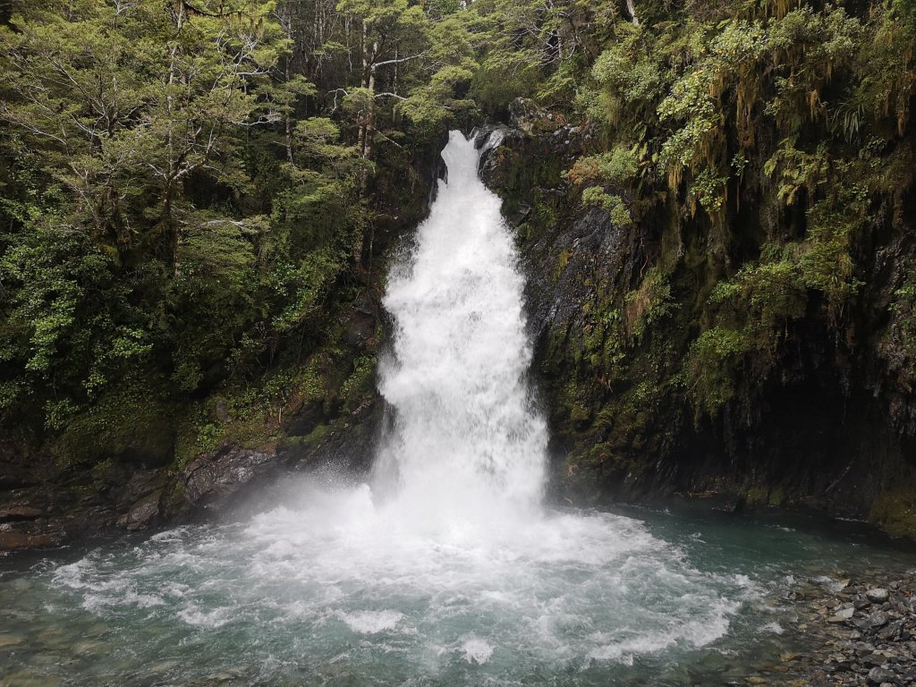 The ascent is gradual. A lurch up to the impressive Travers Falls. I’d pictured a swim here but now drowning looks more likely. There’s a last climb to Upper Travers Hut. Across the valley a cobweb of water spills down. Mount Travers rises up, jagged tops puncturing the clouds. Ahead Quentin is flagging. “Push man push,” I tell him as I pass. Then I stop. Blown out by the last hill. “Get moving,” he quips back as he takes over again. There it is. Upper Travers Hut, just as the rain starts again. Lisa’s there, she comes out. “Did you guys pass a man on your way up? There’s some ladies in here who have lost one.” I don’t remember seeing anyone on their own. A couple of couples. Missing Man stopped to fill his water at a stream and nobody has seen him since. Old mate Jack was here earlier, he’s going over the saddle. If he finds the missing man, he’ll message down. The good news comes quickly, Missing Man pushed on. If only he’d filled out the intentions book. Nobody would have worried. Later we hear news of another hiker having rolled their ankle. The worst sound you can hear on the trail is the spin of helicopter blades. Friends are ahead, friends are behind. You hope that everyone is safe and well. I clean my teeth on the hut deck, looking up in awe at the rock terraces surrounding the high summit of Mount Travers. The deep valley surrounded by giants makes me feel small, insignificant and extremely content.