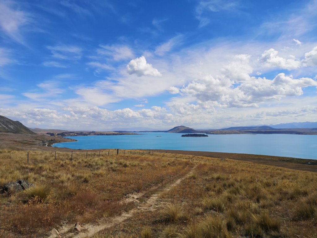 Avalanches of cloud roll over the Southern Alps. Whites shift to grey above the Two Thumb Range. A change is coming, but not yet. It’s still baking hot. I drink from every stream crossing. Stop again to apply sunscreen. Finally the trail turns towards Lake Tekapo and I begin to go downhill. I start looking for campsites, and Bryan, who may have changed his mind. A few places look good but there’s no water. Boundary Stream is on the other side of the fence. I keep going to the road. The 4WD track down to the lake looks less appealing than any potential spots I’d already passed. I wait for Paula, she’s not far behind. She’s obviously seen the total lack of potential. “We can’t camp here,” she says “let’s go to Tekapo.” I check my inReach, already a 32km day. What’s another 14km? Its only 5pm, there’s plenty of daylight left. I ping a message off to Quentin to see if he can secure us some accommodation. We’ll be coming late. We walk together at a turtle’s pace. A steady turtle. A turtle that consistently hits 4km an hour. The gravel road tumbles away. Around the 40km mark my legs start asking questions like can we stop? And what the fuck? We wobble into Tekapo, pass the statue of a dog, the church. We hit the high street which is also the State Highway. “There’s Bryan,” Paula says. I can’t see anyone. The I see him, he leads us up to the Tailor Made Hostel where we’ve got a room to share.