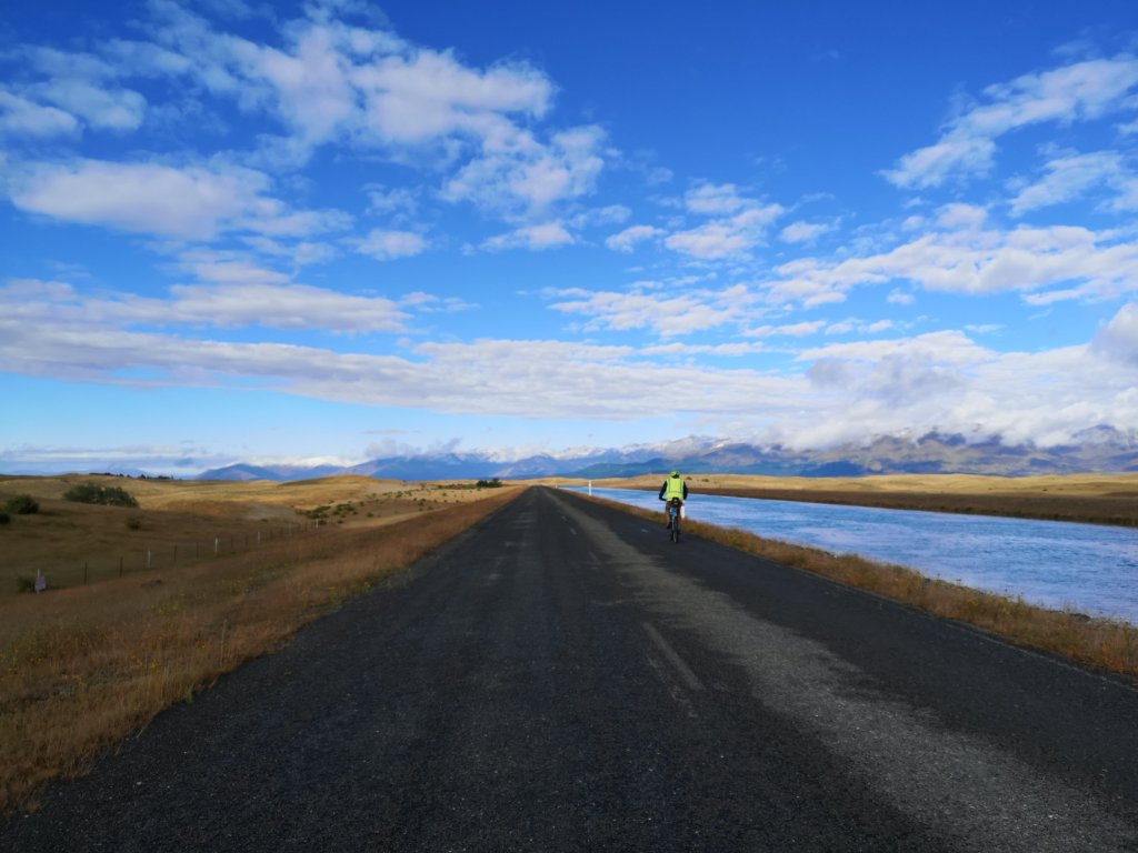 I always claim it’s been 10 years since I was last on a bike. Now it’s almost true. Paula sets off first. “This is a walk so I’m going to walk,” every last inch if she can. We share another this might be the last time goodbye. She’ll only be a day behind, she’s made that up before. Kris, who definitely wasn’t going to do any more big days, is going to follow her. They are relentless, unstoppable. Our tortoise and hare. I pack my things and leave. Our biker gang consists of Bryan, Jack, Quentin and I. We trade packs for bikes. There is no safety briefing, or I missed it. No adjustments. Take your wheels and leave. We all stop before exiting Tekapo to move saddles, tuck in laces, adjust helmet straps. In our high vis yellow jackets we take off for the canal roads. I have two aims for today, get there and ideally get there without falling off.