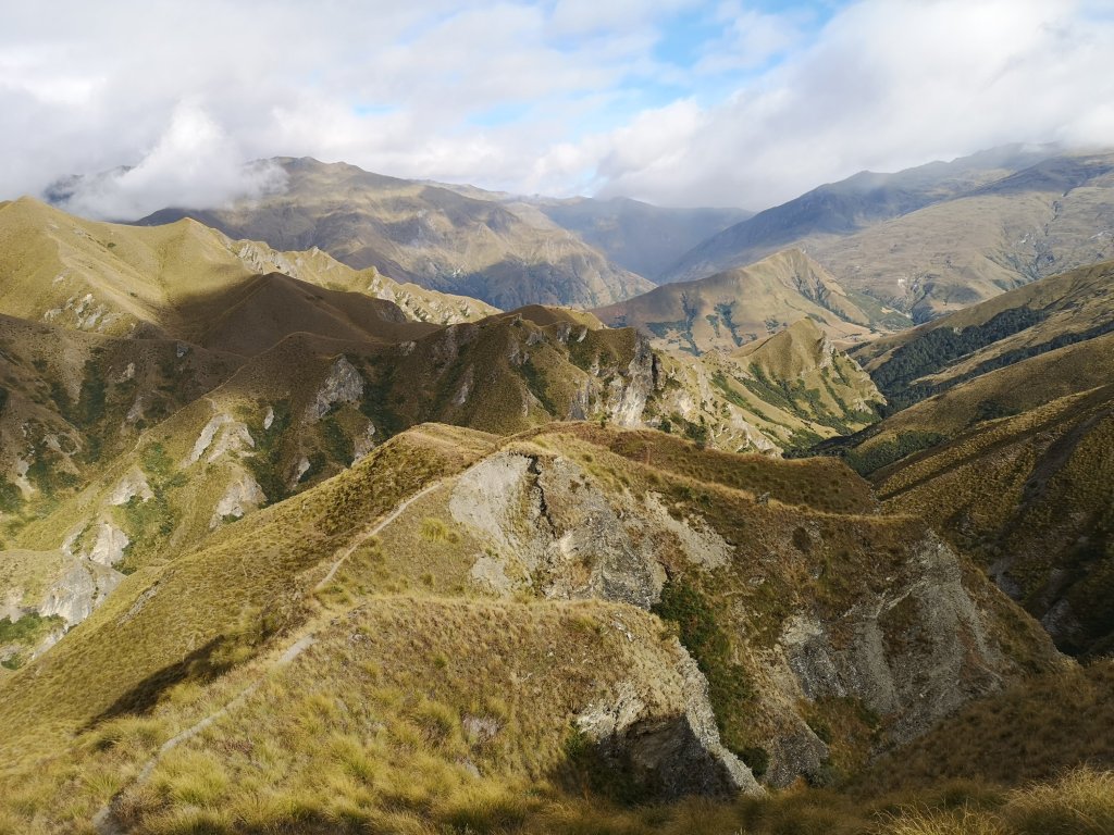 Despite my enthusiasm I’m the last to leave, not that this really matters to me anymore. I’m only 15 minutes behind the leaders despite an extremely relaxed cup of tea. I’ll get there when I get there and today I’m on fire. I overtake Izzy and Cilla on the climb up to Jack’s Saddle. Our new friends have had some time off the trail, their legs having lost a few kilometres. I meet Bryan on the top. Tiny beads of moisture land on my face. I believe they call this rain. Never amounts to much. I can see Kris ahead but I never catch her, I meet her with Luke at Highland Creek Hut. I take a longer first break, emptying the feedbags, fueling the tank, lightening the load.