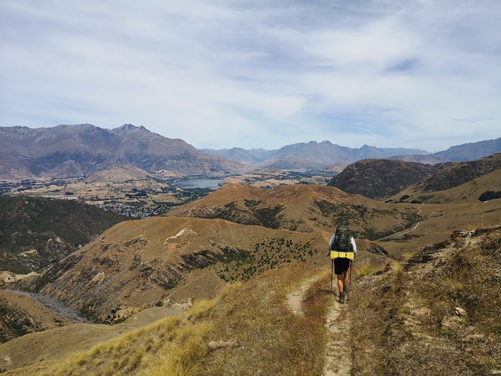 My boots drain quickly and when I leave the water. They’ve now perforated lines of holes running either side. They’ll get me to Queenstownz which will be far enough. We arrive in to Macetown, or what remains of Macetown. The old gold mining community now long gone. Only renovated ruins and old stone walls remain among the exotic trees. I’m amazed when Izzy and Cilla catch up before we set off, they’re still keeping up with us. I suspect Izzy now keen to join a new group for the next section. Bryan sets off first, I walk with Luke towards the start of the final climb. I stop at the base to empty my boots of river stones and sand. Once I’m moving again I find I’m disorientated. A big white sign with hand write words point me up Big Hill to Arrowtown but it feels wrong. I walk along the 4WD track a way further but there are no footprints. Nobody has come this way. I spot Luke climbing above me. That must be the way. It’s not until someone else coming down the hill tells me that’s the right way that I truly accept it. It’s hot out and the climb is a sweaty one. I scrape myself on to the top to find Bryan and Luke. I make my bougie wrap of salami, cheese, cherry tomatoes and olives. A real class above peanut butter and Nutella. Arrowtown isn’t below us but around another corner. A sidling, slowly dropping track takes us off the hills and into town. Before us lies the promised lands of fridge chilled cans of Fanta. A quiet room in the holiday park. A good meal at one of them local bars.
