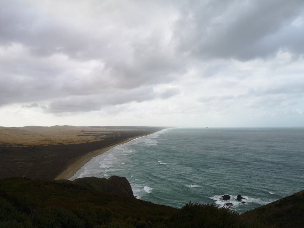 The walking is easy. Of course it is. I’ve only had three days off. Not counting the additional four of walking with Iain. I haven’t forgotten what I’m about yet. Dune grasses cover sandy hills like a net. I climb up the dunes and receive a sandblasting for my efforts. Invisible grains hitting my face like hail. I’d been more interested in when the tide would be on my side than the detail of the weather. There are tyre tracks in the sand which leads to firmer ground. I follow the ridge of solid sand and plug away. 12km isn’t a lot. Easing back in before three of 30km in a row. I’m keen to get moving, to put distance behind me. Counting down now. I race across the second beach, coming in to Twilight Beach in under three hours. There’s a temptation to keep going. Camp somewhere in the dunes further along but I don’t gain anything. I settle on settling in. The Aucklanders come through not long after, seeking out flat and sheltered ground. Apparently too much to ask for a campsite. Gusts ripple through the tent, the worst I’ve endured in a long time. I’ve already found signs of wear. To be fair I think I’ve had more use our of this one than any other I’ve owned. A bigger issue is the slow release of air from my sleeping pad. After two hours I’m touching the floor. I’m in a pickle there. I’m pretty sure it’s the valve leaking and not a puncture. It’s kind of essential kit for the next 50 nights of mostly camping.