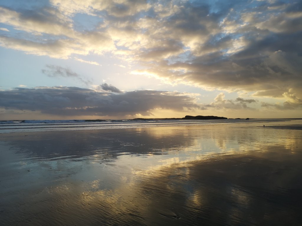 On the horizon a different shade of blue rises above the waves. Hills. The Tauroa Peninsula still 45km away. Something else to focus on. The end of 90 Mile Beach literally in sight. Ghost white shells of crabs mingle with the remains of other shellfish. I pass the remains of a second shark. Empty sockets staring blindly. The sands spread once more. The wet surface reflecting fluffs of white cloud and blue for now sky. Traffic increases. I start to take note of where it peels off the beach. My exit for the day. The straps ony sandals have cut tiny holes in my toes. I rinse the blood and sand off in the sea, only for it to return as I cross the sand and head to the gravel road. Tomorrow I’ll go barefoot if I can, the rest of the way to Ahipara. There’s a little magic to be found at Hukatere Camp Ground. Gabi, the owner, grabs me a Coke Zero and a couple of tiny bananas. A man in a campervan offers me a piece of fish for my dinner. I’m honest with him “I’d have no idea how to cook it,” he shrugs his shoulders at me. I pitch my went tent and walk away, taking shelter in the shade near the kitchen. Another couple on site hear what I’m about and ask the big question. “What’s your motivation for doing it?” I actually don’t know the answer anymore. I’ve started to I’ll finish. Then I get another, more interesting question. “What have you learned?” One to take away but Jane’s advice remains. “Do the thing, whatever it is.” The magic remains strong here, they bring me an unripe avocado and a can of Parrotdog’s Bitterbitch. I have been spoiled this day.