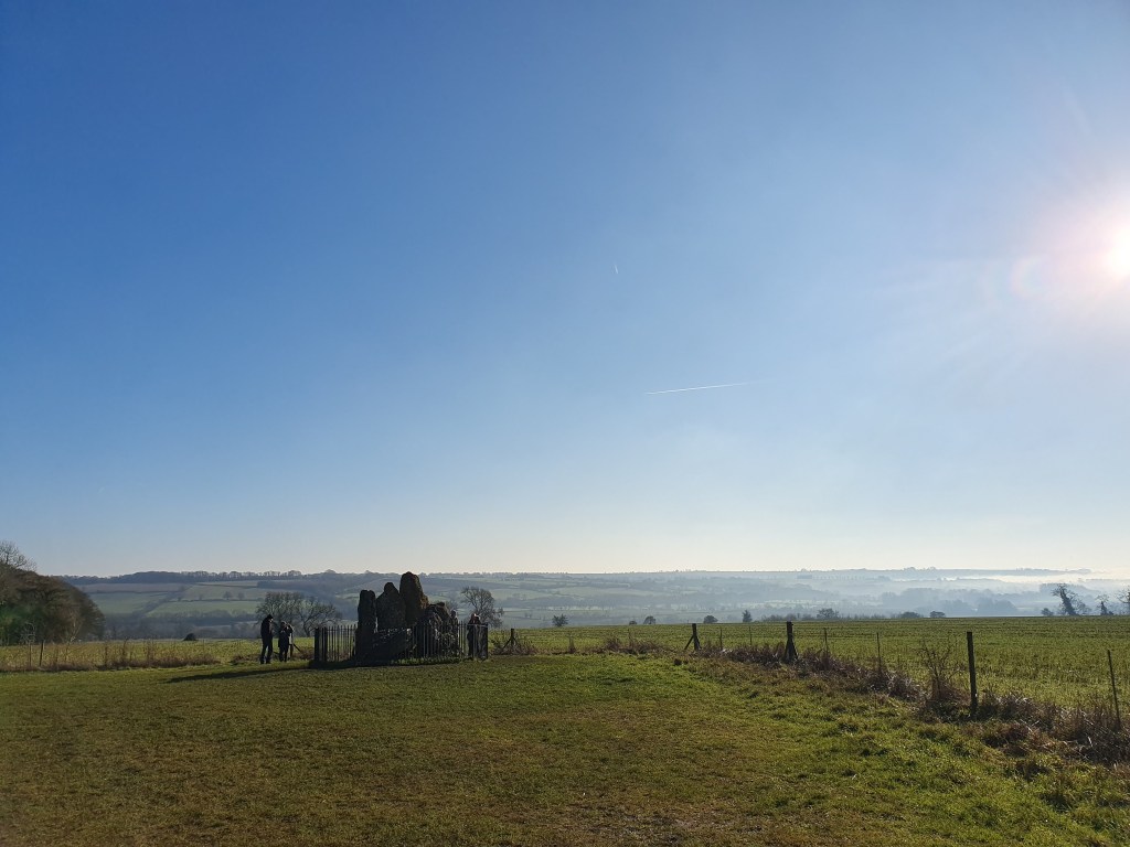 Rachael and I stomp through the frozen puddles. The ice cracking under foot. A small stream crosses the footpath. Wobbling stones rise just above the surface of the water to aide in a dry crossing. We follow another couple, walking their tiny dogs across the fields. They climb and turn. We climb and turn. We reach out first destination. The Whispering Knights might be a tomb. They might be men turned to stone. Once upon a time they might have formed a portal to the underworld itself. They might just be rocks, placed at jaunty angles for reasons known only to the people who did it, 5000 years ago. Lying in a hollow on the surface of one stone, a handful of weathered coins. Offerings to the dead? Buying luck? A little further on there’s a ring of stones; the Rollrights. On the edge of the Rollright stone circle, a tree is littered with string and bags. Whispers and promises, hopes and prayers. The blonde girl wandering the stones looks like she’s wearing a bright blue druid’s cape. Hard to be sure beneath the black coat over the top. A drone flies overheard, buzzing like a wasps nest. Getting the only good angle of the stone circle. At the foot of the King Stone, batches of reeds. Asking for I know not what. The best explanation for all this is the stones were once men. The king and his army. One of them, maybe all of them, upset a local witch and she thought I haven’t got time for any of this, and turned them all to stone.